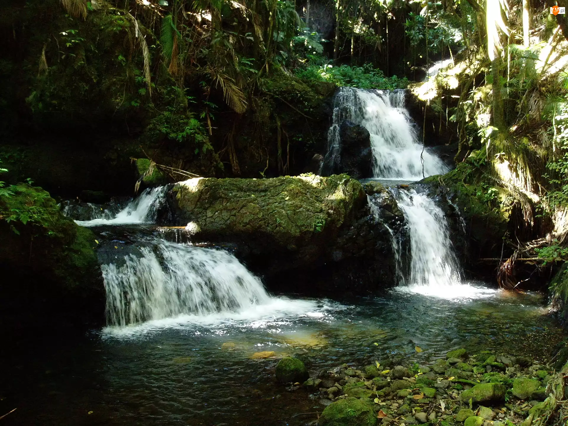 Drzewa, Hawaje, Woda, Wodospad, Kamienie