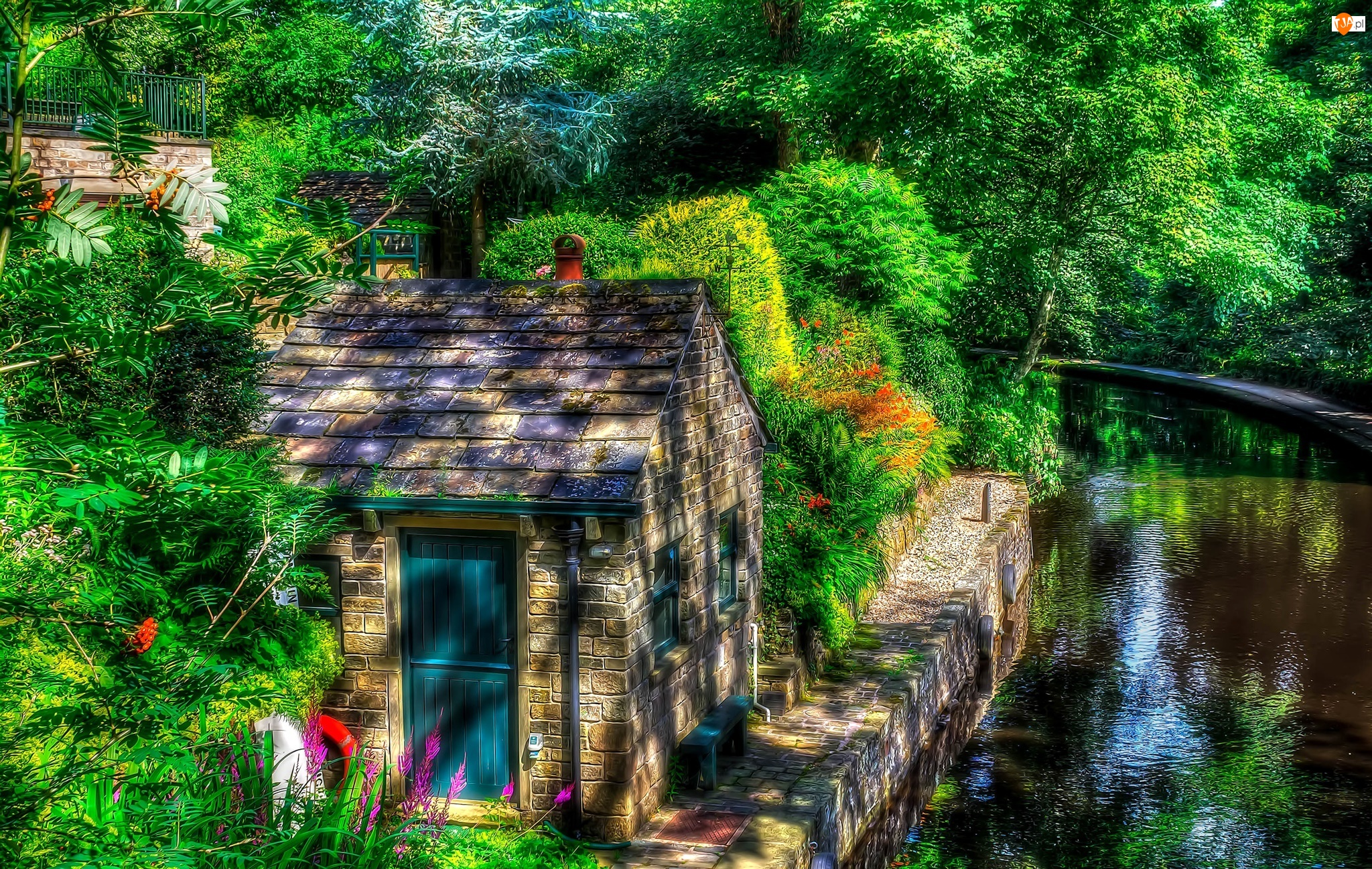 Drzewa, HDR, Dom, Anglia, Rzeczka, Lato