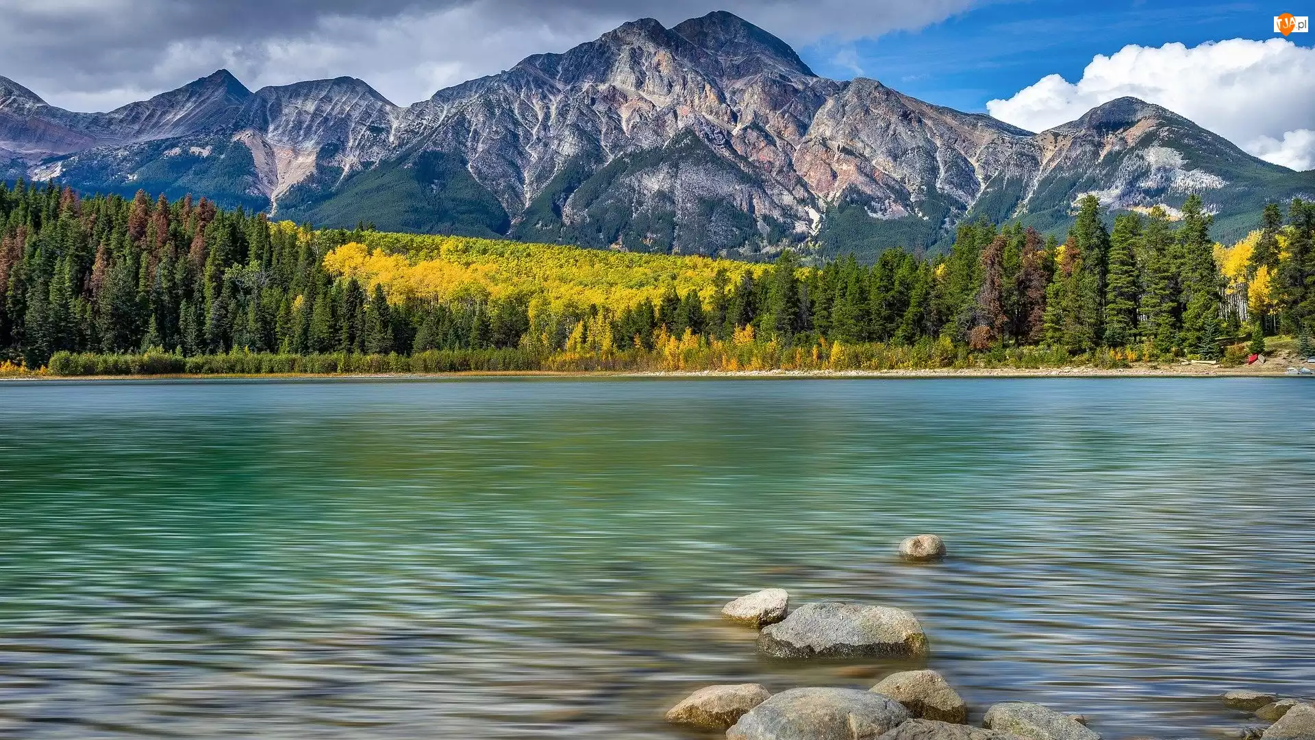 Drzewa, Kamienie, Jezioro, Góry, Lasy