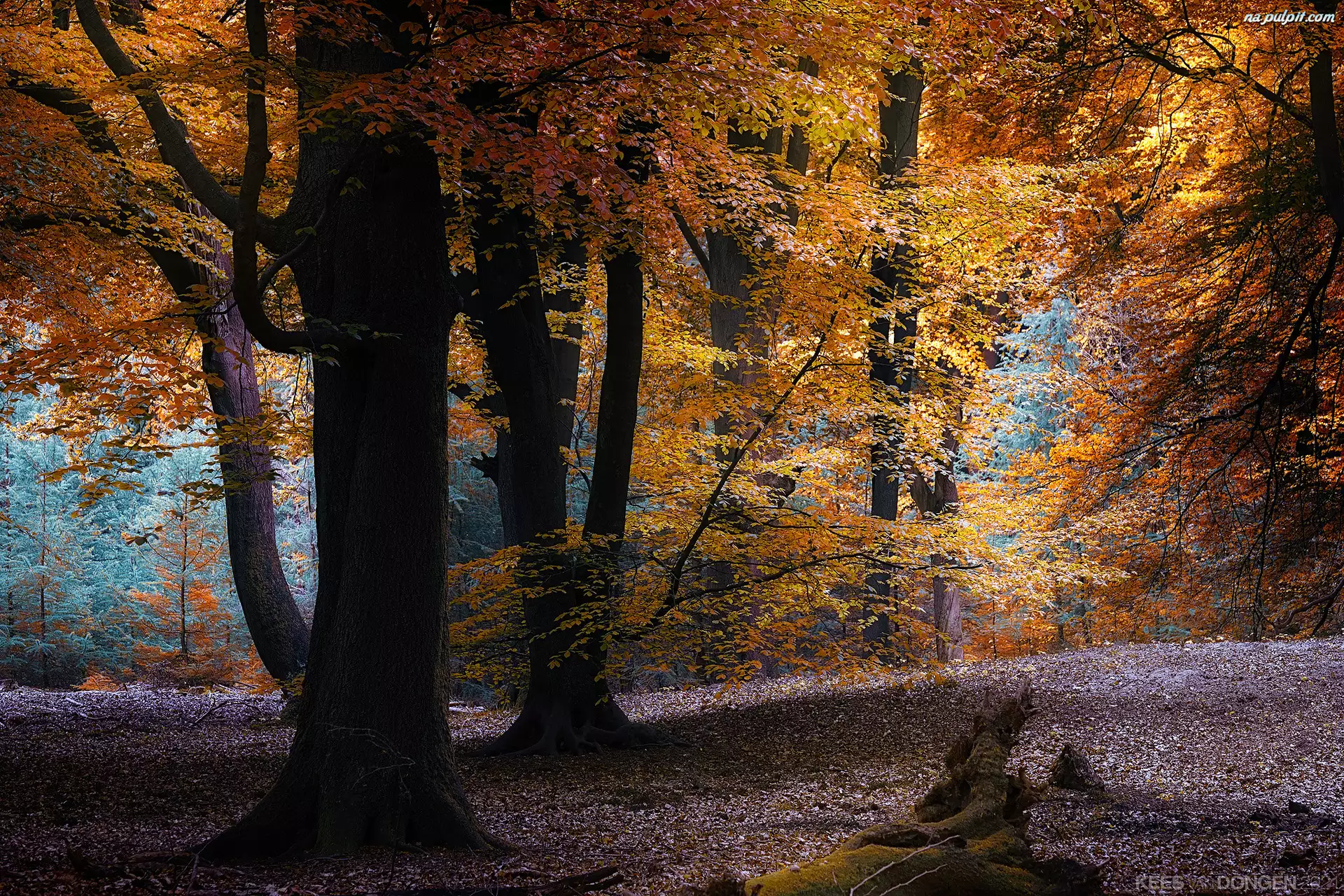 Drzewa, Liście, Jesień, Las, Pożółkłe