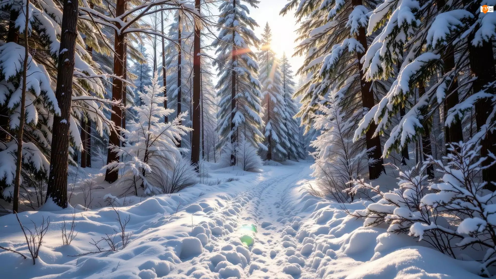 Drzewa, Ośnieżone, Droga, Zima, Zaśnieżona, Las