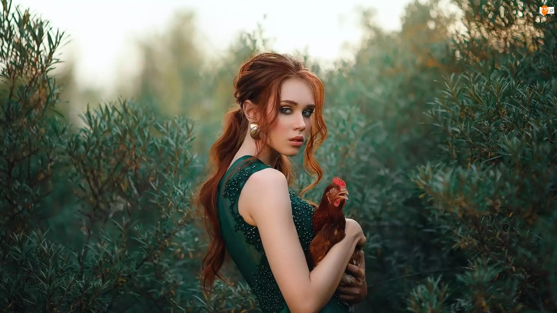 Drzewa, Rudowłosa, Dziewczyna, Kura