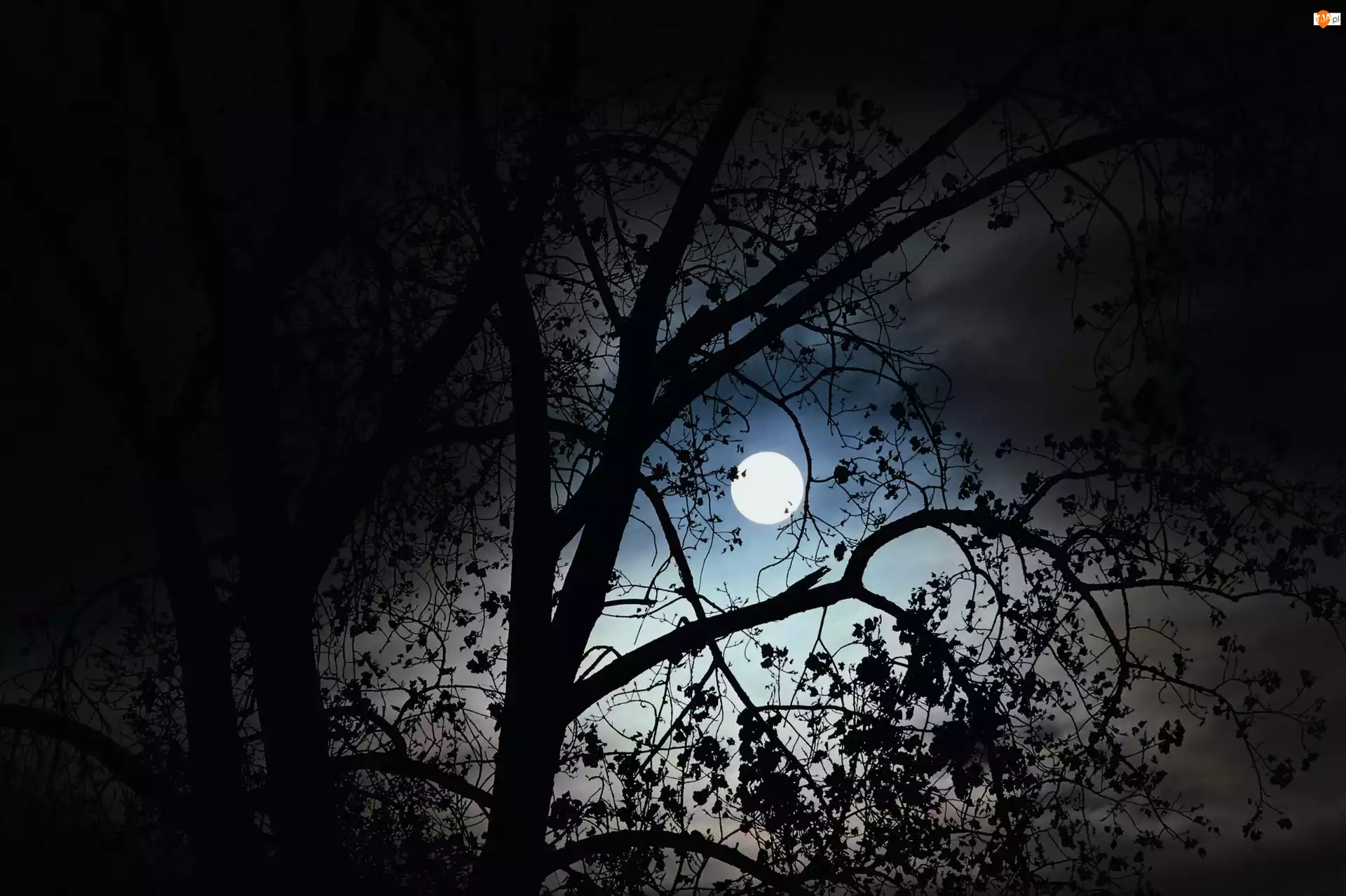 Drzewo, Liście, Pełnia, Księżyca