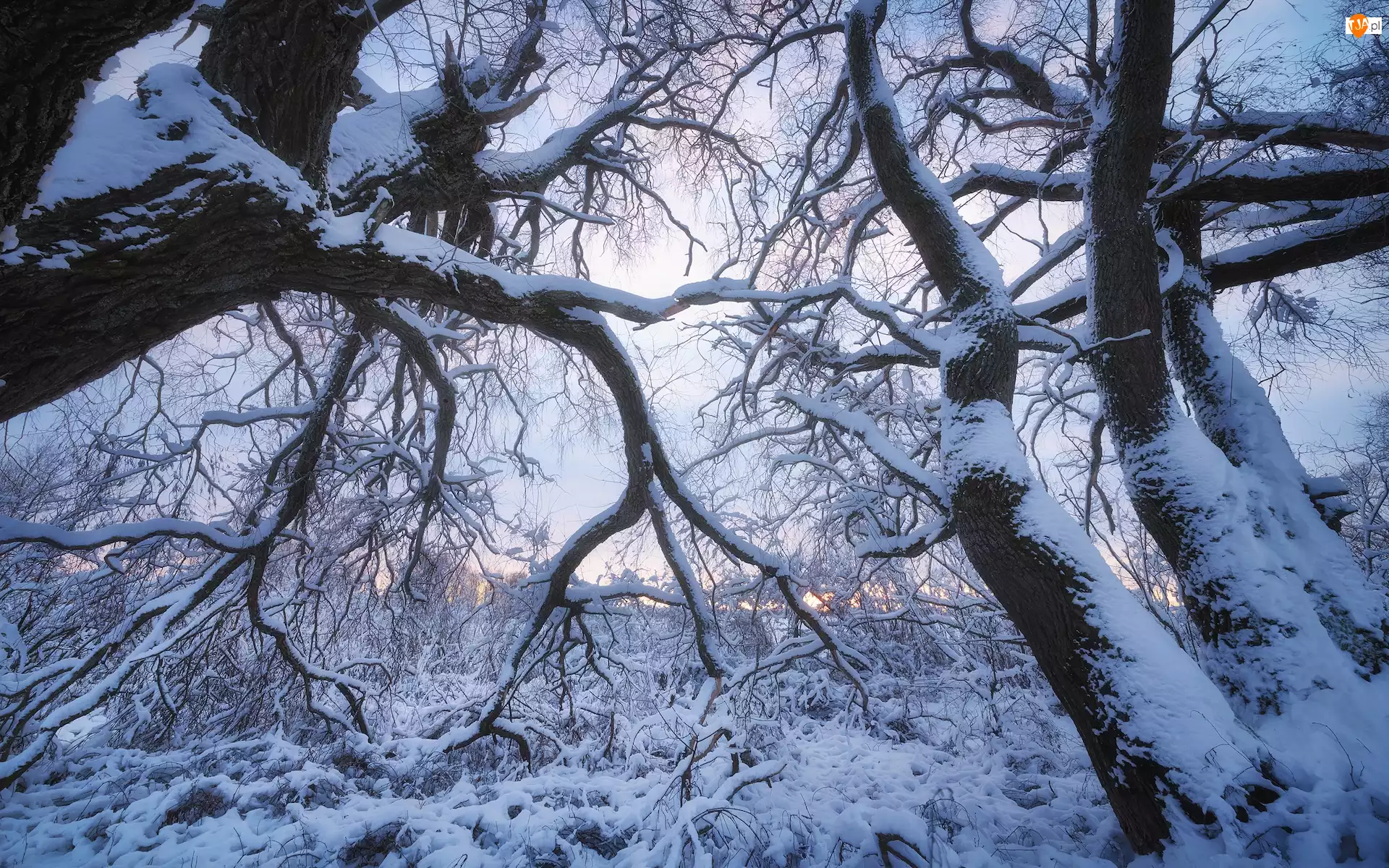 Drzewo, Ośnieżone, Śnieg, Zima, Gałęzie