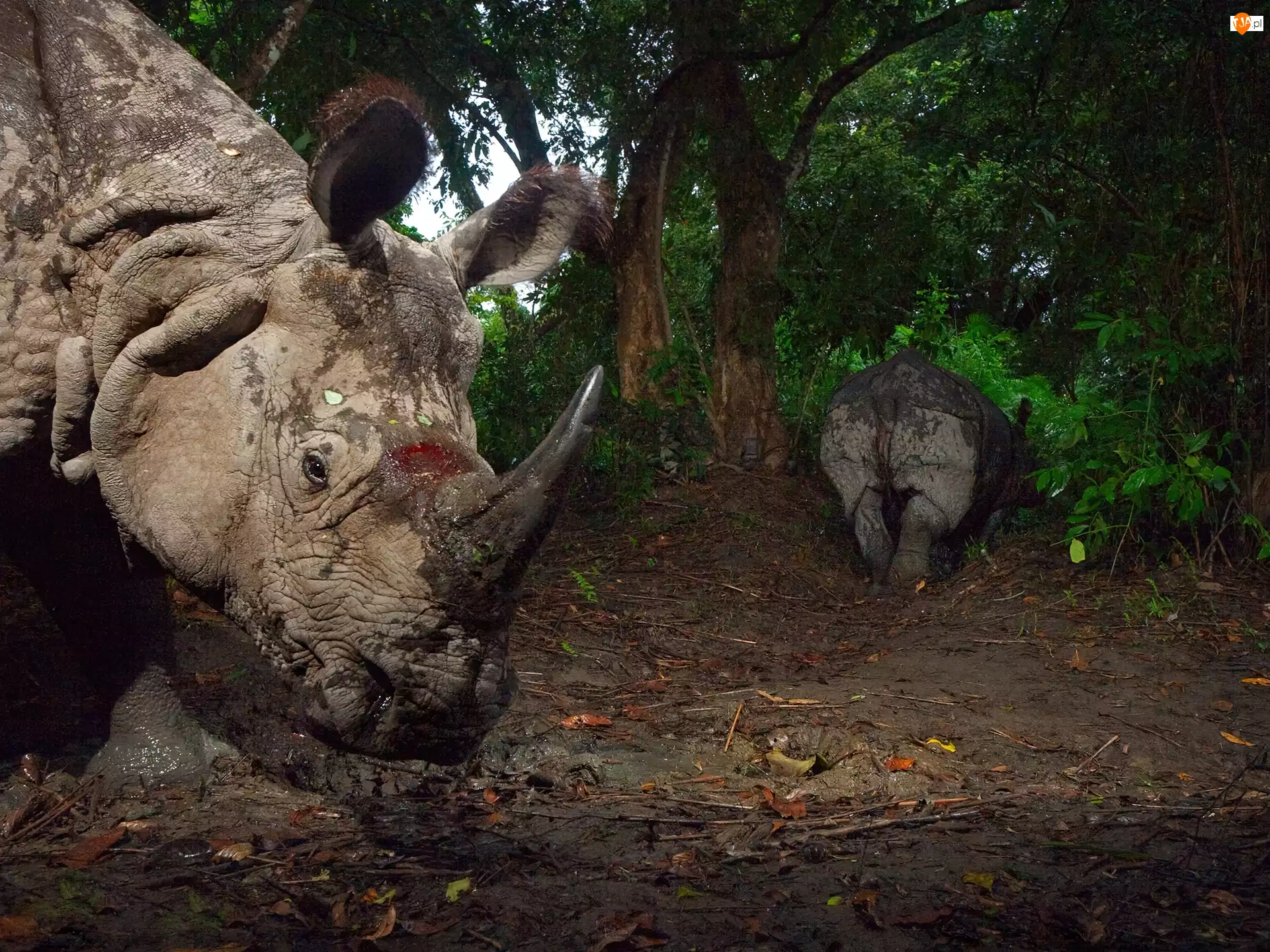 Dwa, Drzewa, Nosorożce, Róg