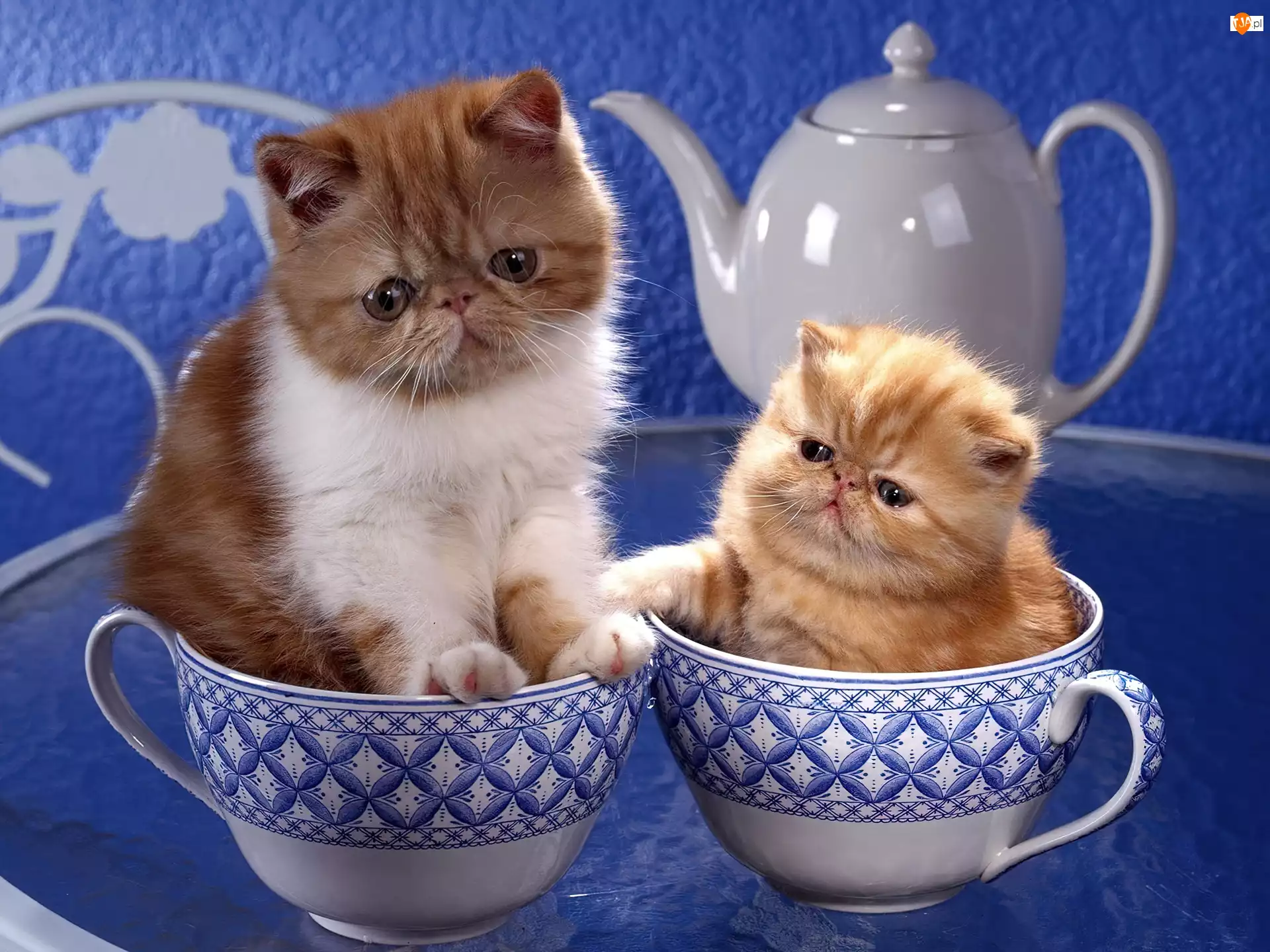 Dwa, Dzbanek, Kotki, Filiżanki