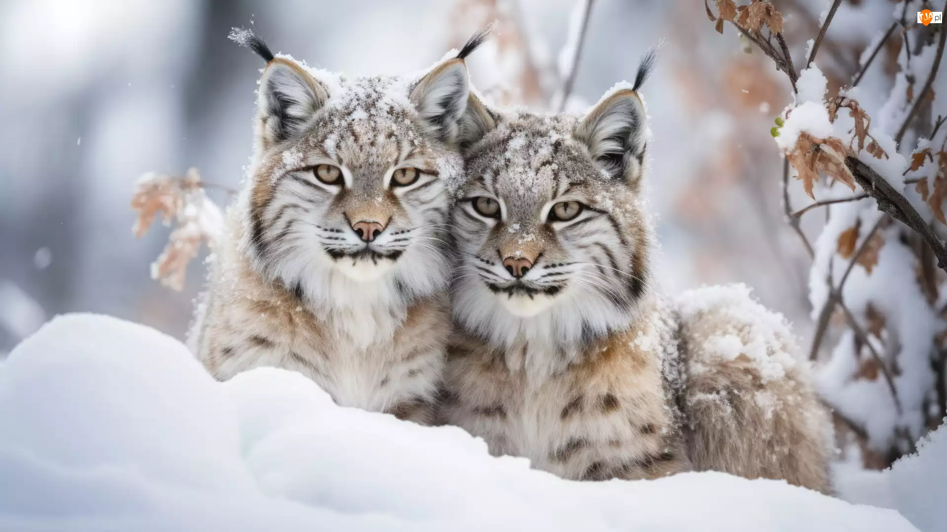 Dwa, Gałązki, Śnieg, Zima, Rysie