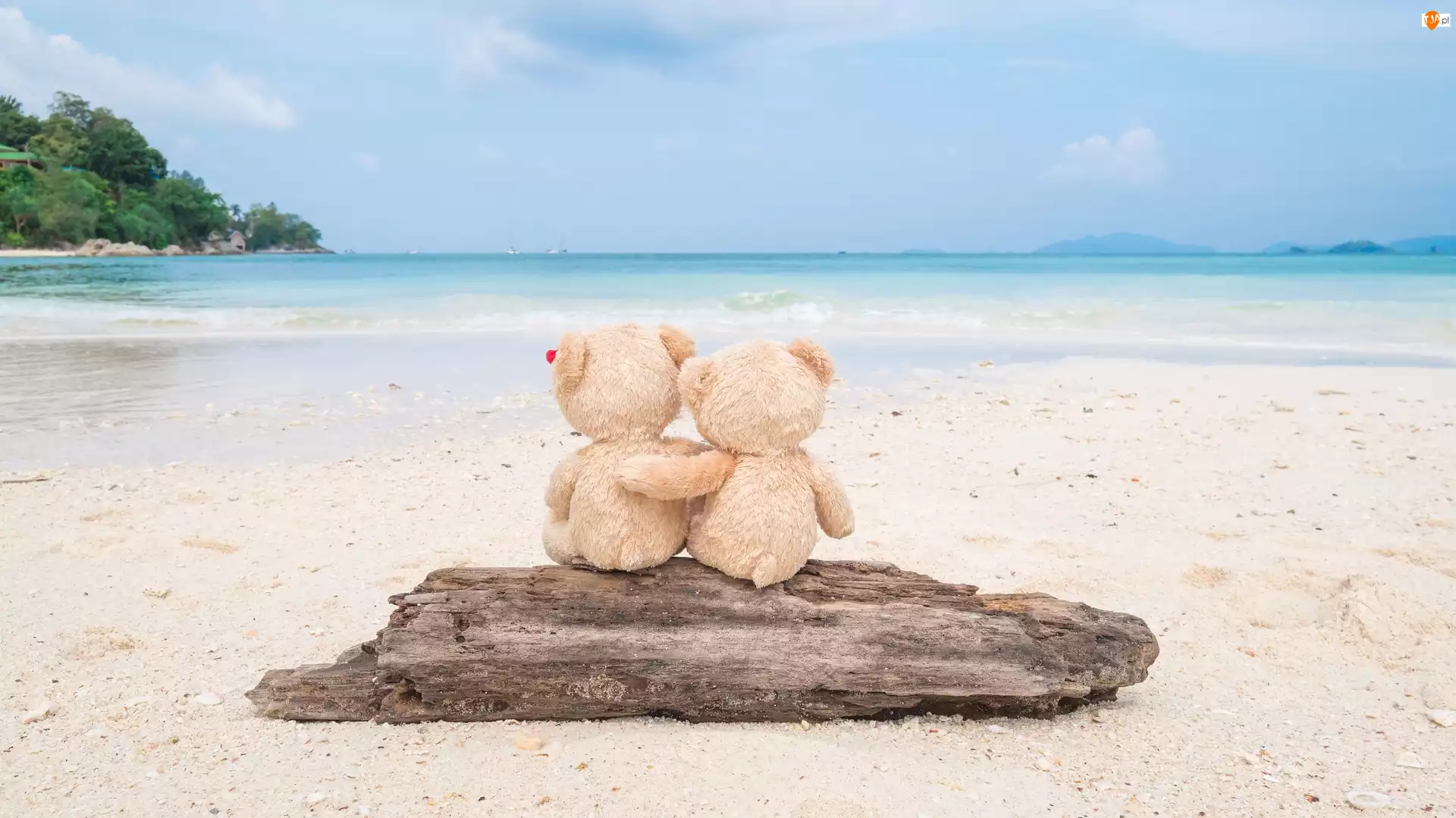 Kłoda, Plaża, Misie, Pluszowe, Piasek