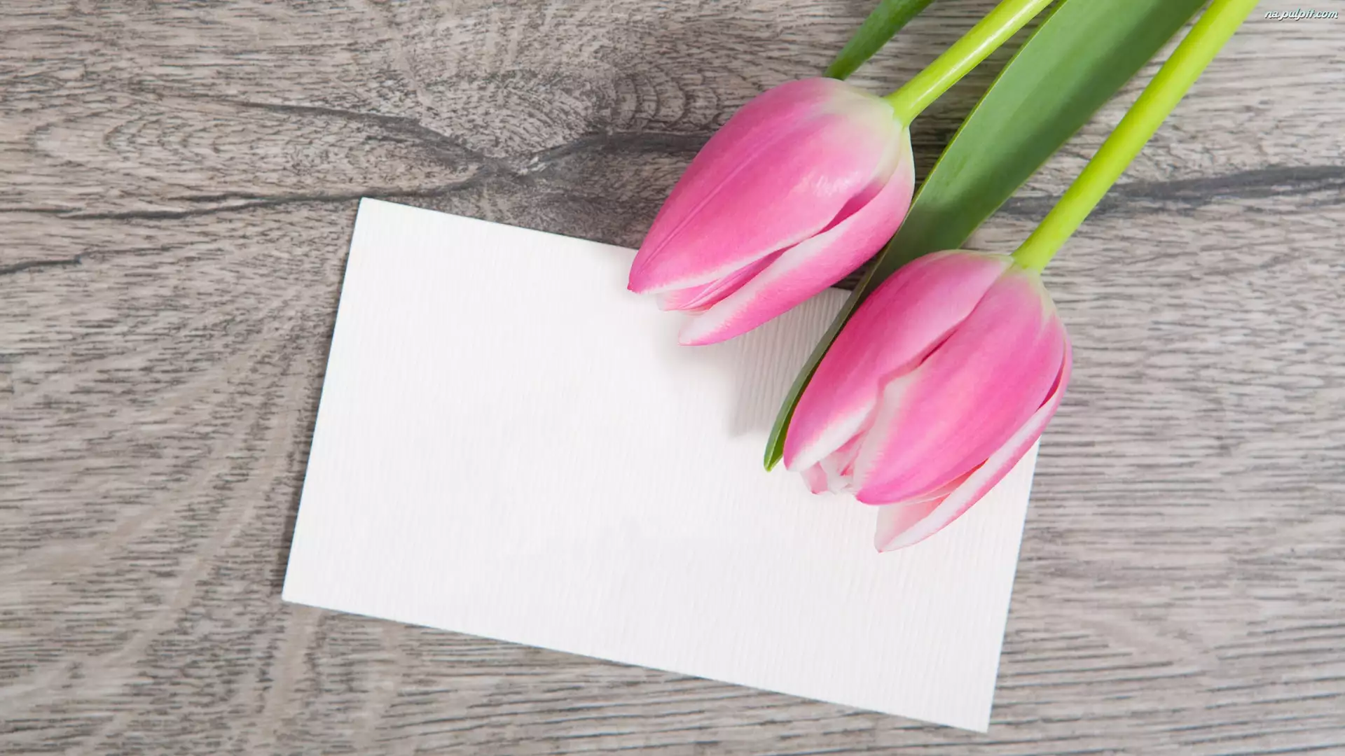Tulipany, Deski, Różowe, Dwa, Kartka
