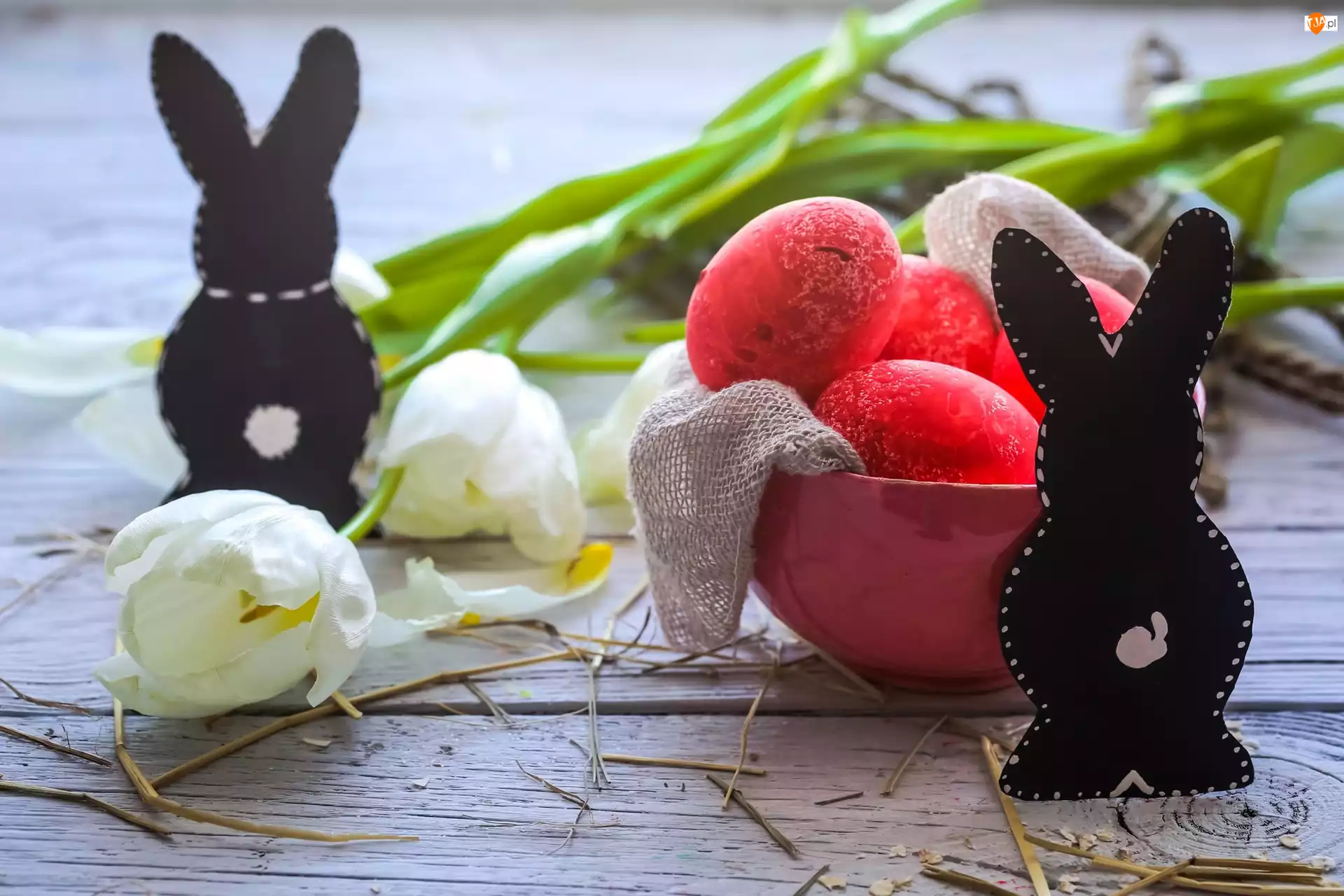 Miseczka, Wielkanoc, Pisanki, Zajączki, Tulipany