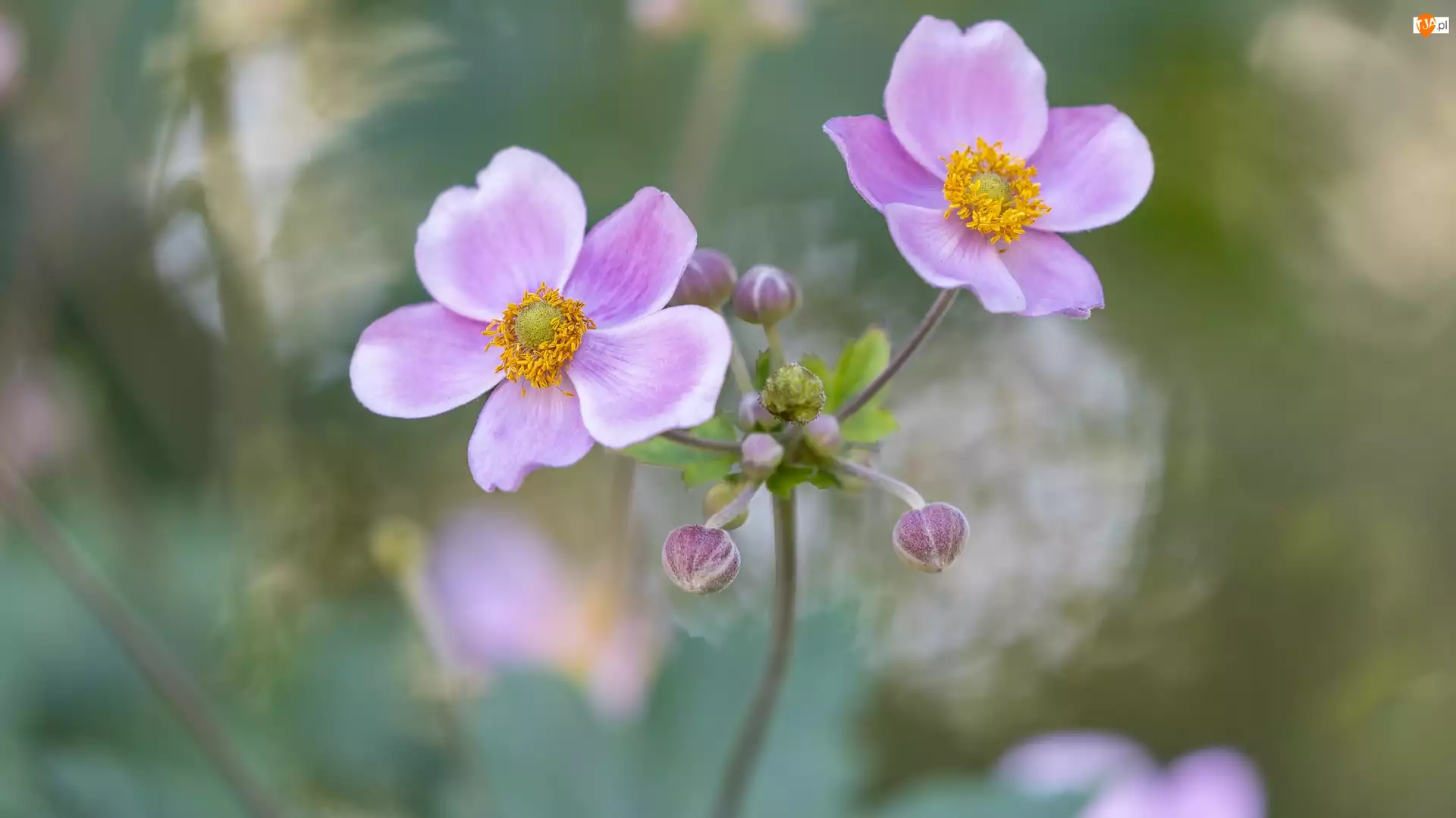 Pąki, Rozwinięte, Kwiaty, Zawilce japońskie