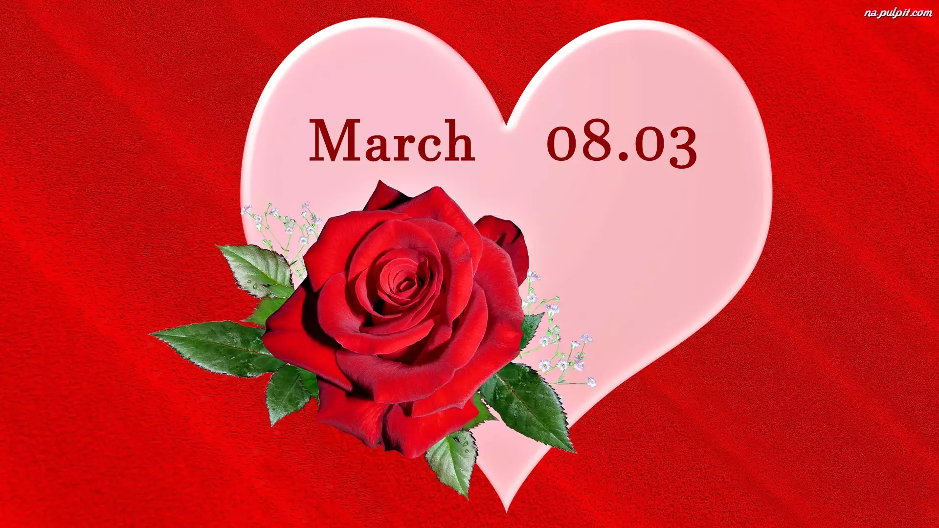 Dzień Kobiet z datą sercem i różą