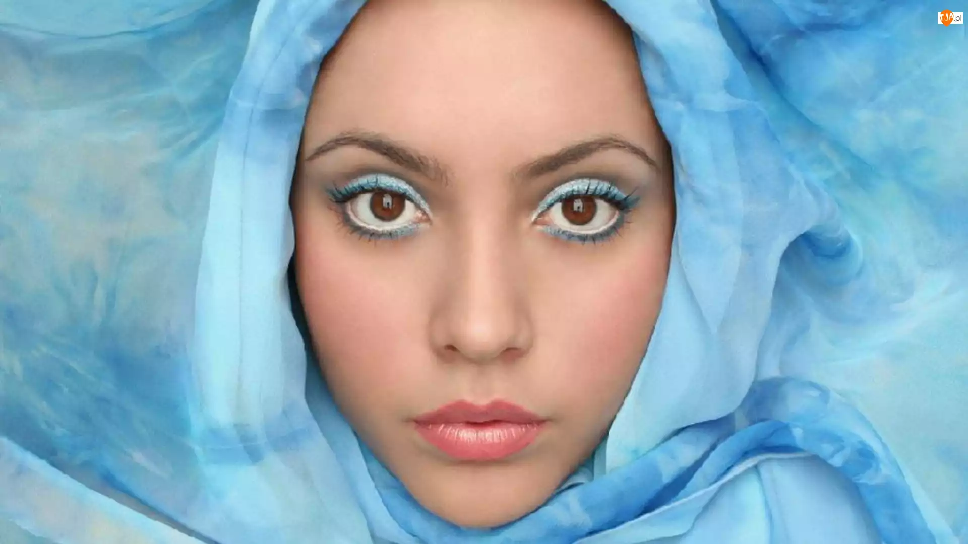 Dziewczyna, Chusta, Makijaż, Błękitna