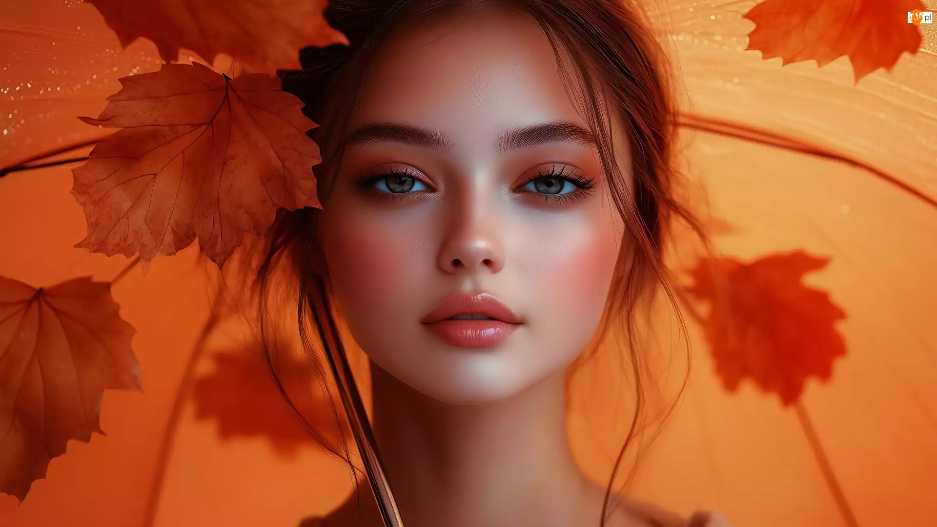 Dziewczyna, Grafika AI, Twarz, Kobieta, Liście