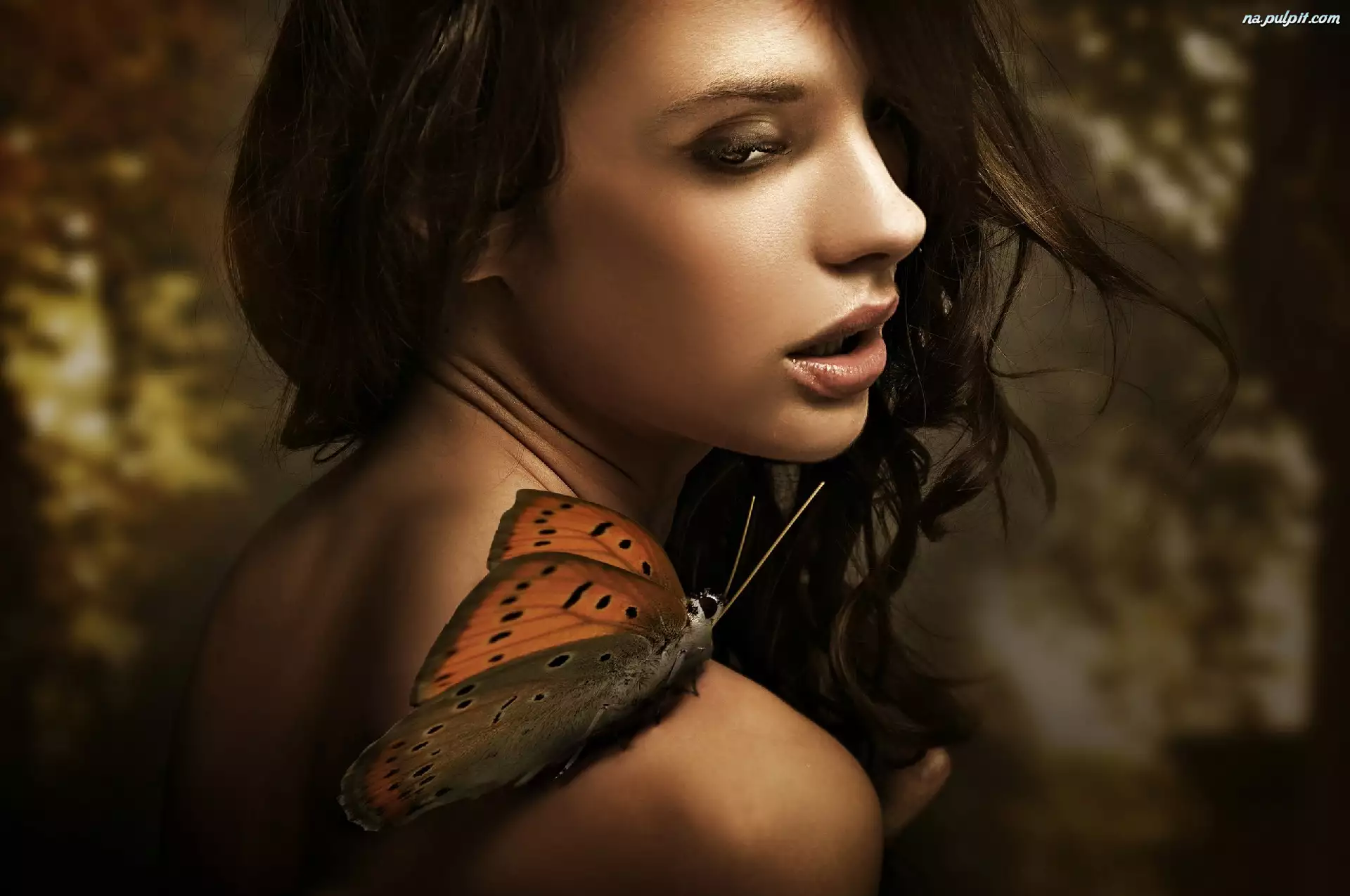 Motyl, Dziewczyna, Makijaż, Ramie