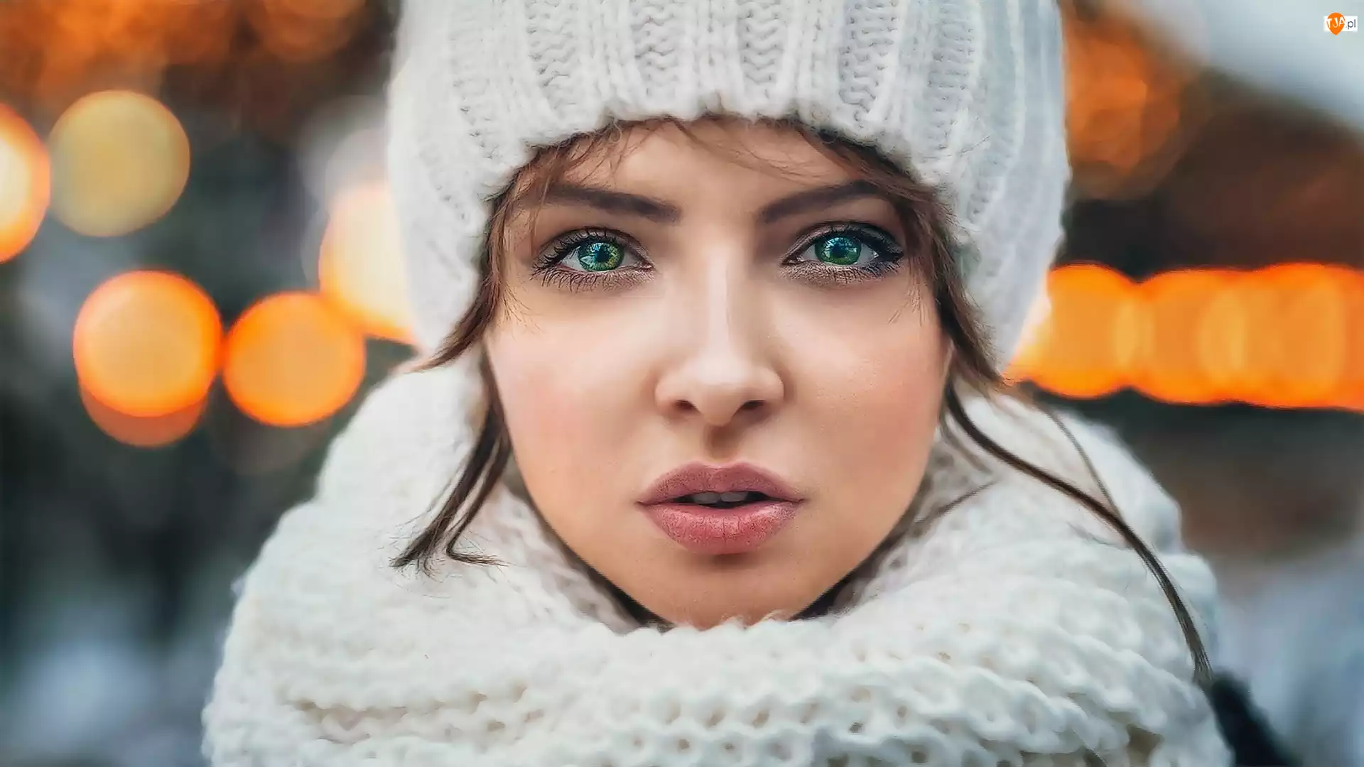 Oczy, Kobieta, Szalik, Czapka, Zielone
