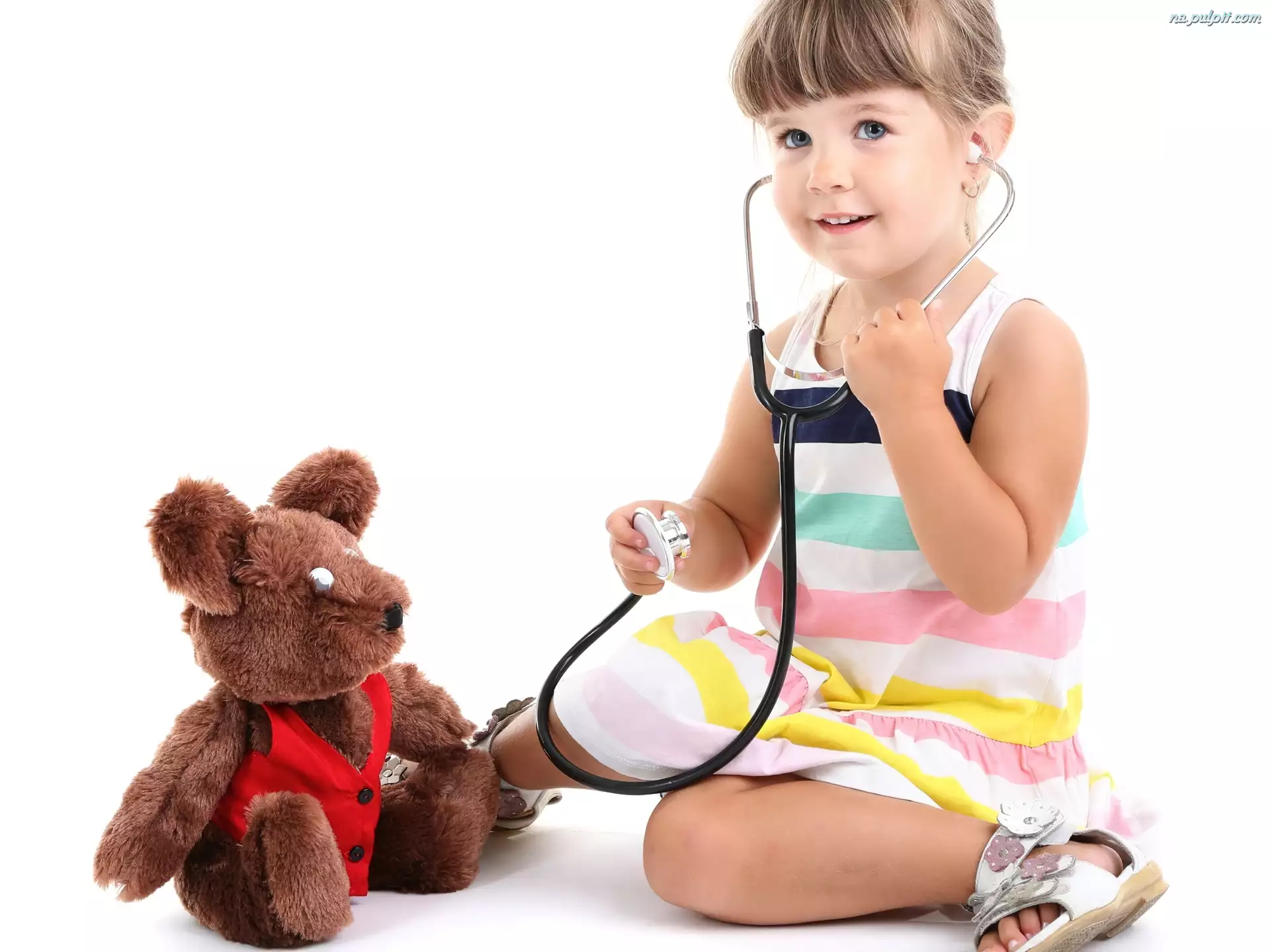 Dziewczynka, Lekarskie, Miś, Słuchawki