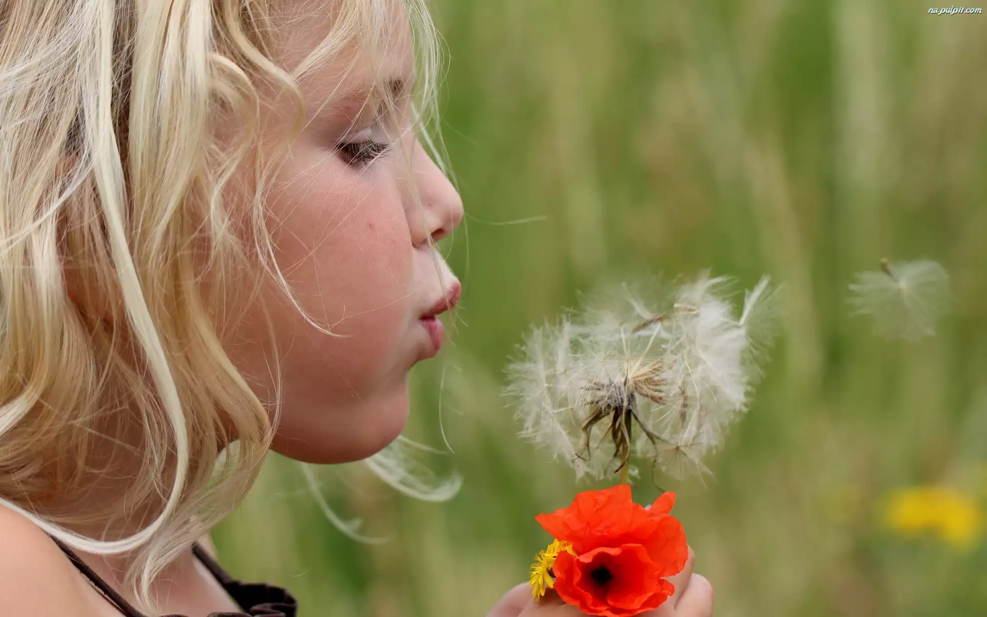 Dziewczynka, Mak, Łąka, Dmuchawiec