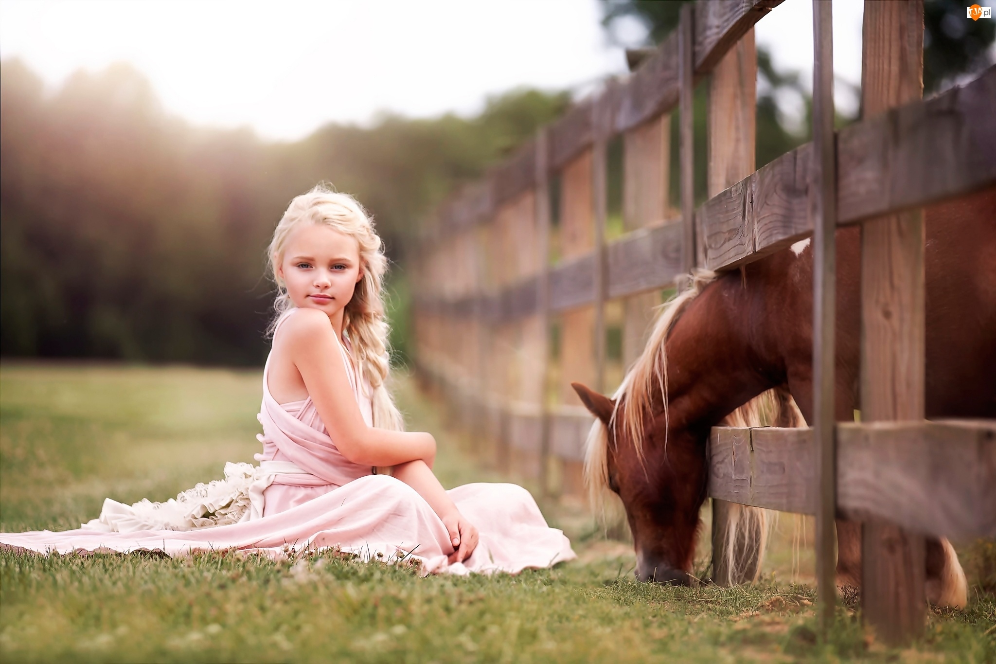 Dziewczynka, Ogrodzenie, Koń, Płot