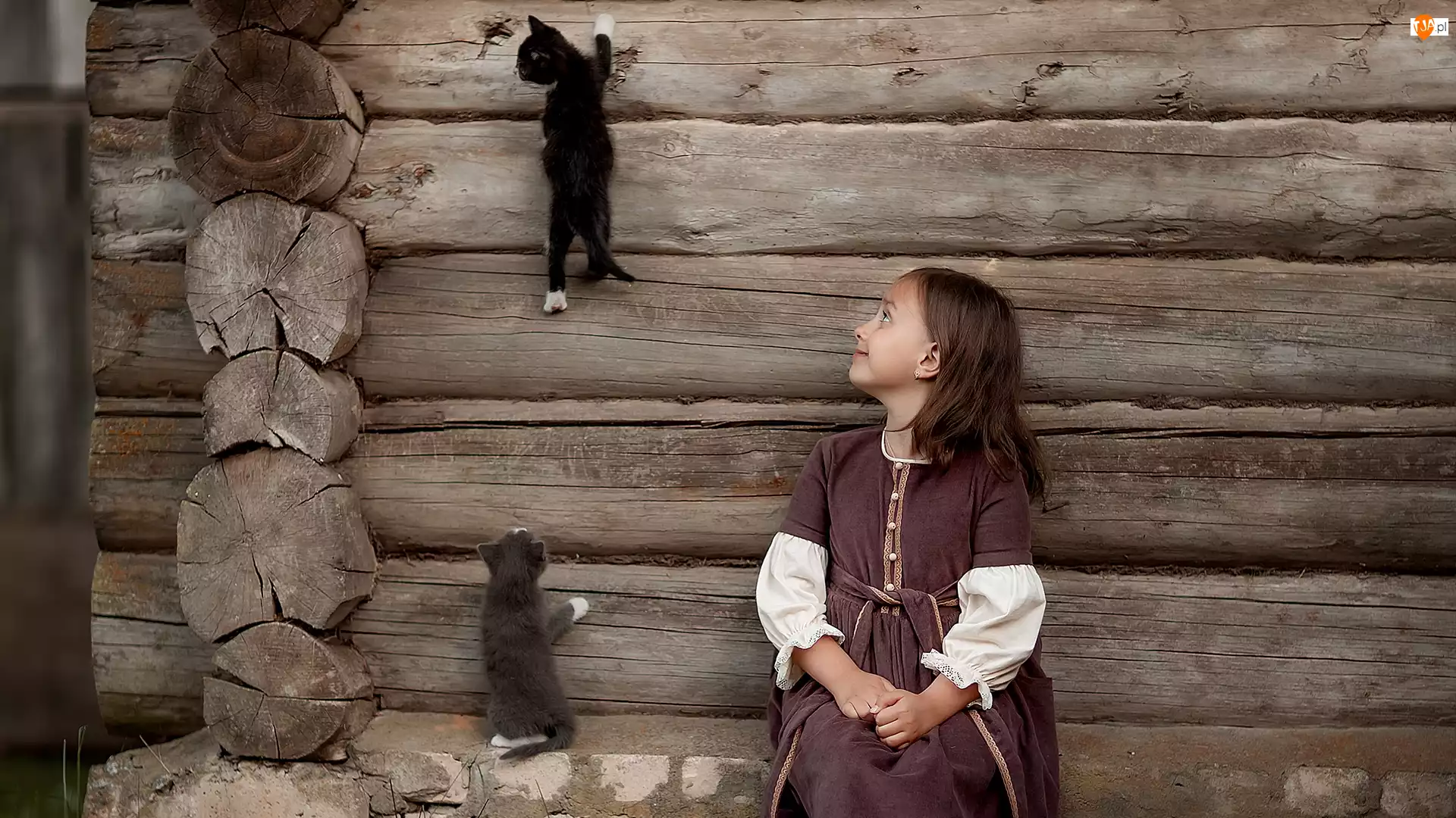Belki, Kotki, Ściana, Dziewczynka, Dwa