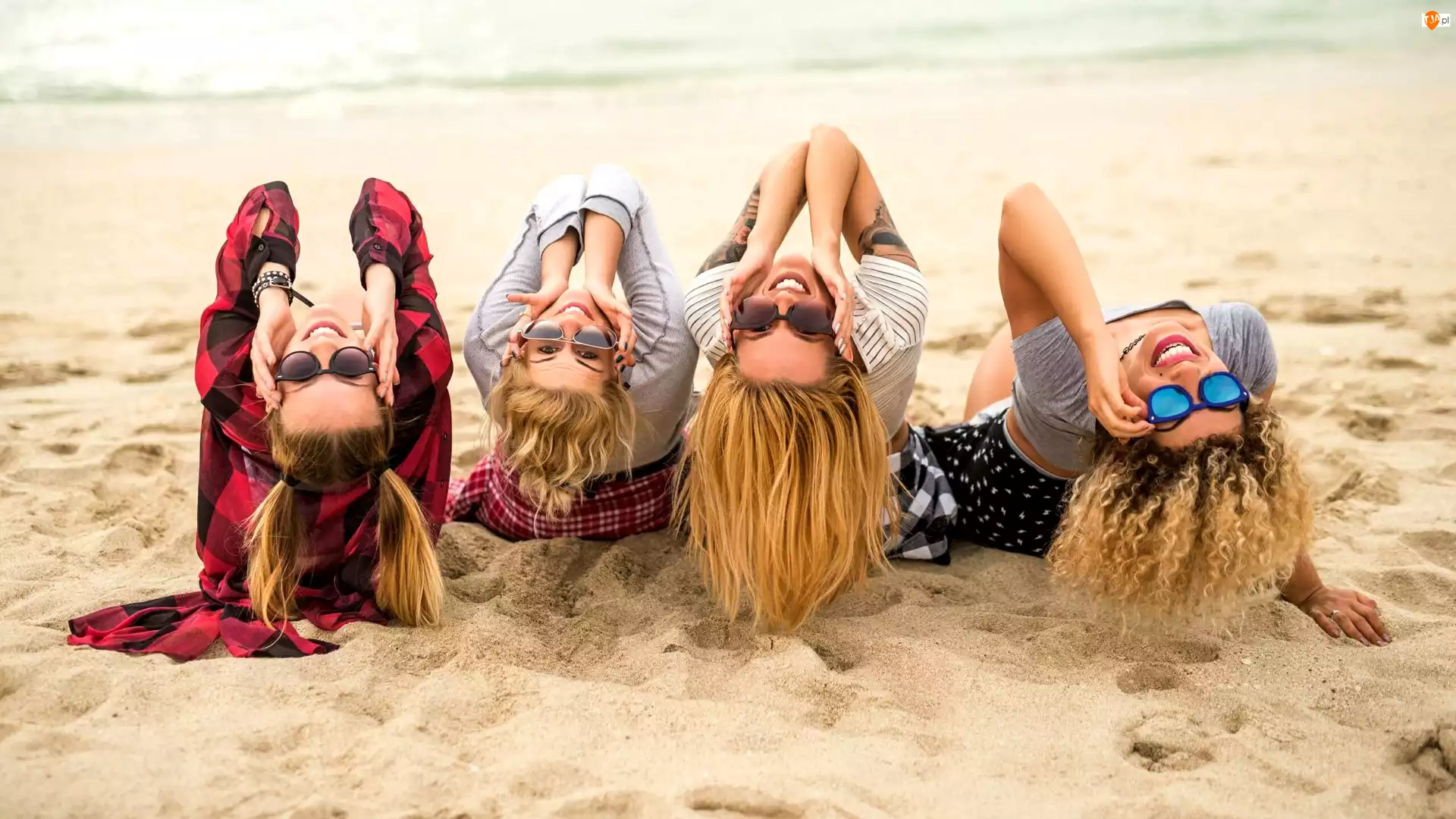 Dziewczyny, Plaża, Radosne, Wakacje, Uśmiechnięte, Okulary
