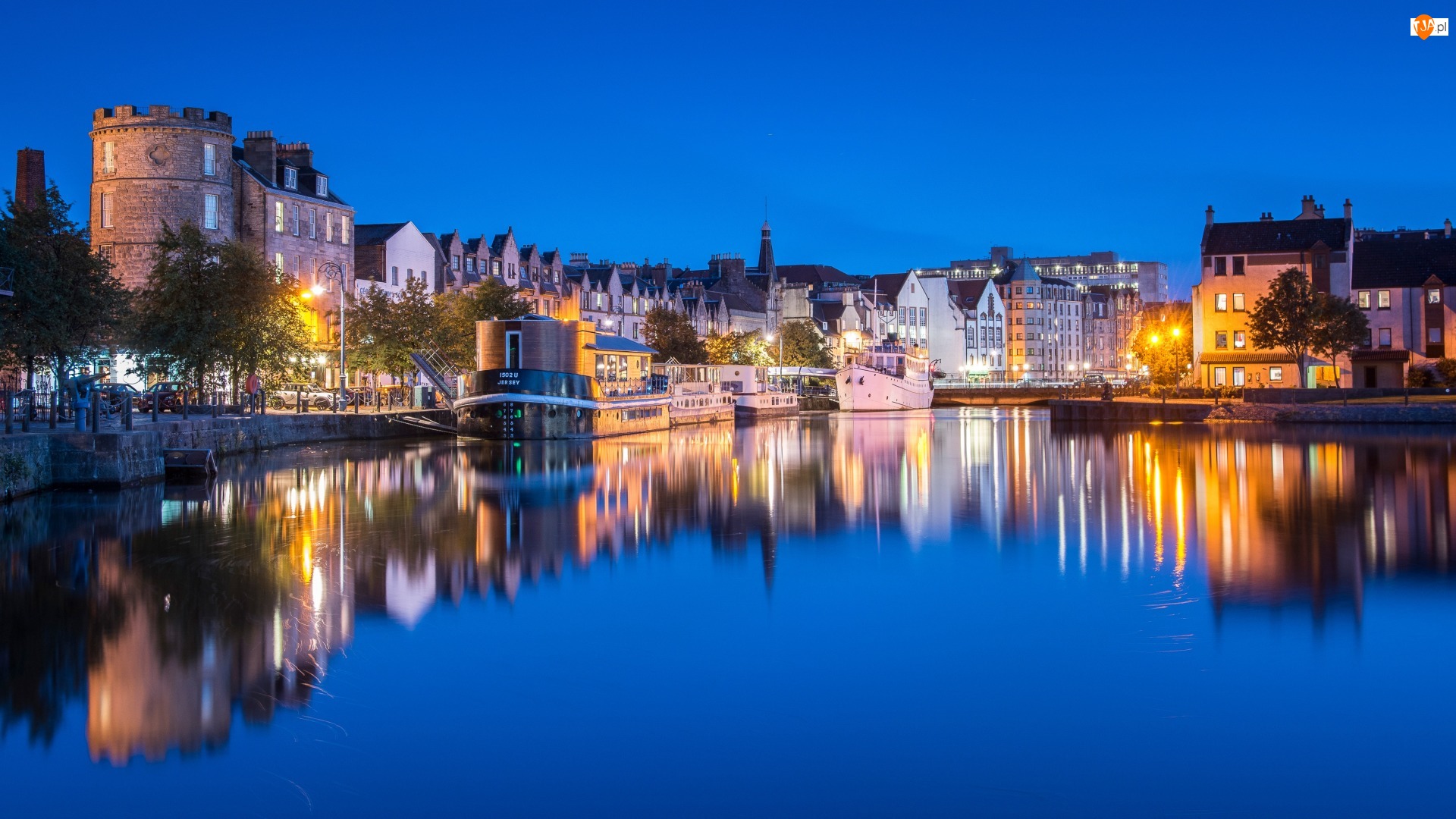 Edynburg, Szkocja, Dzielnica Leith, Zmierzch, Zatoka Firth of Forth, Domy