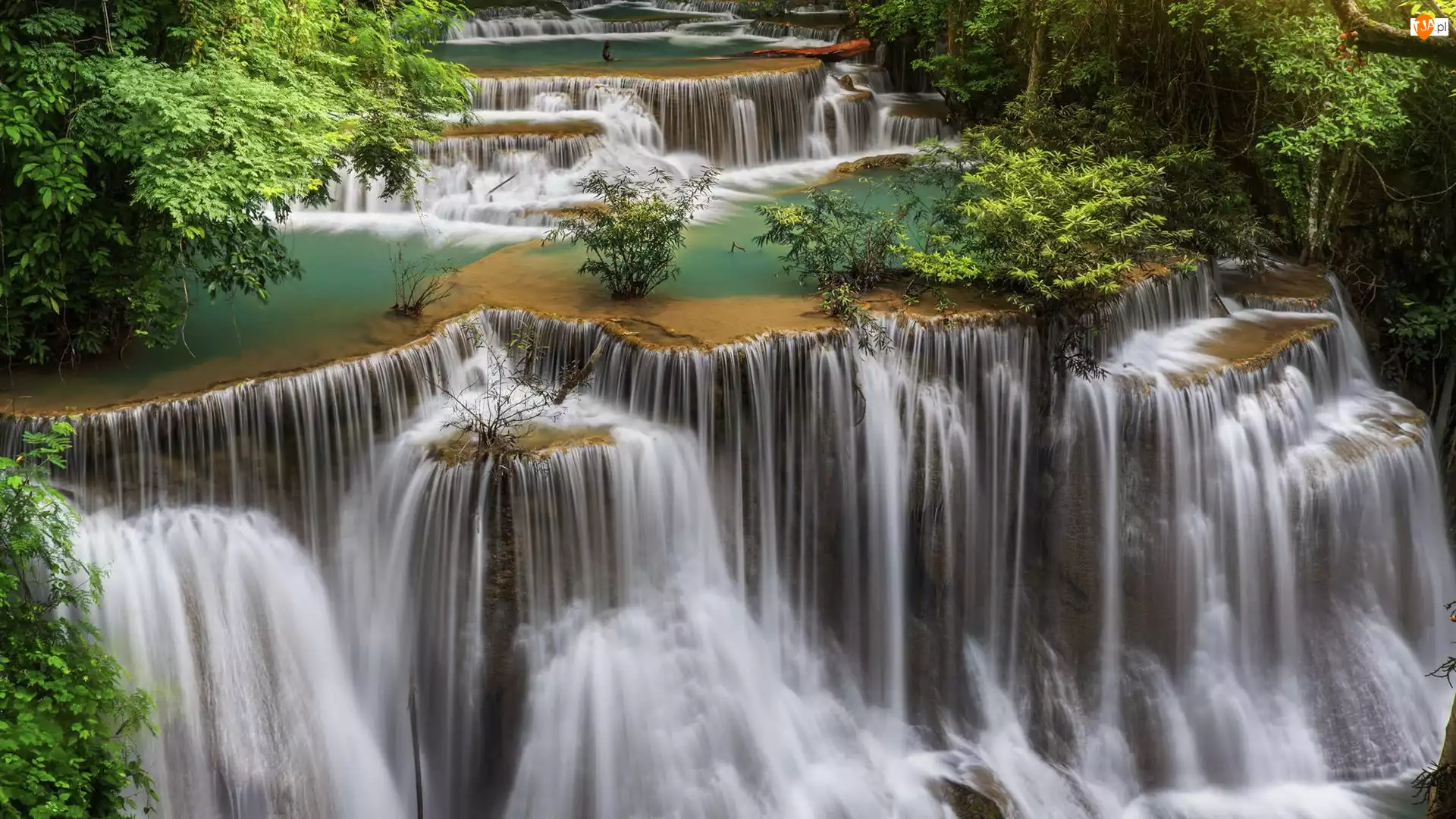 Erawan Falls, Kaskada, Tajlandia, Wodospad, Prowincja Kanchanaburi, Drzewa, Park Narodowy Erawan