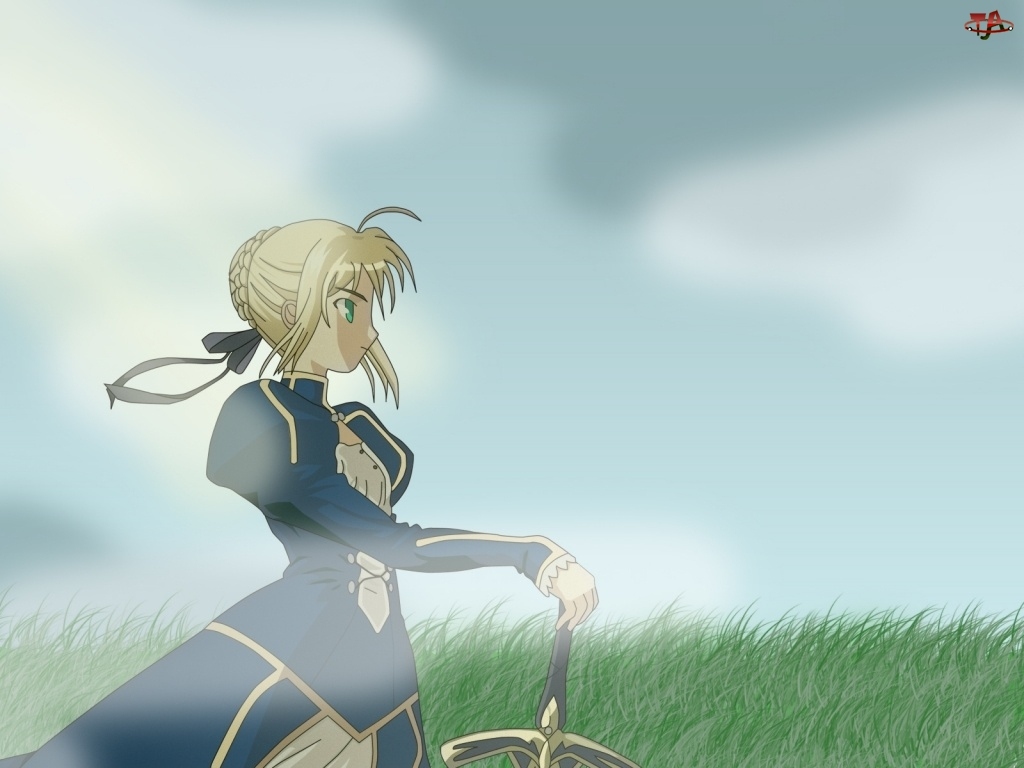 Fate Stay Night, miecz, kobieta, polana