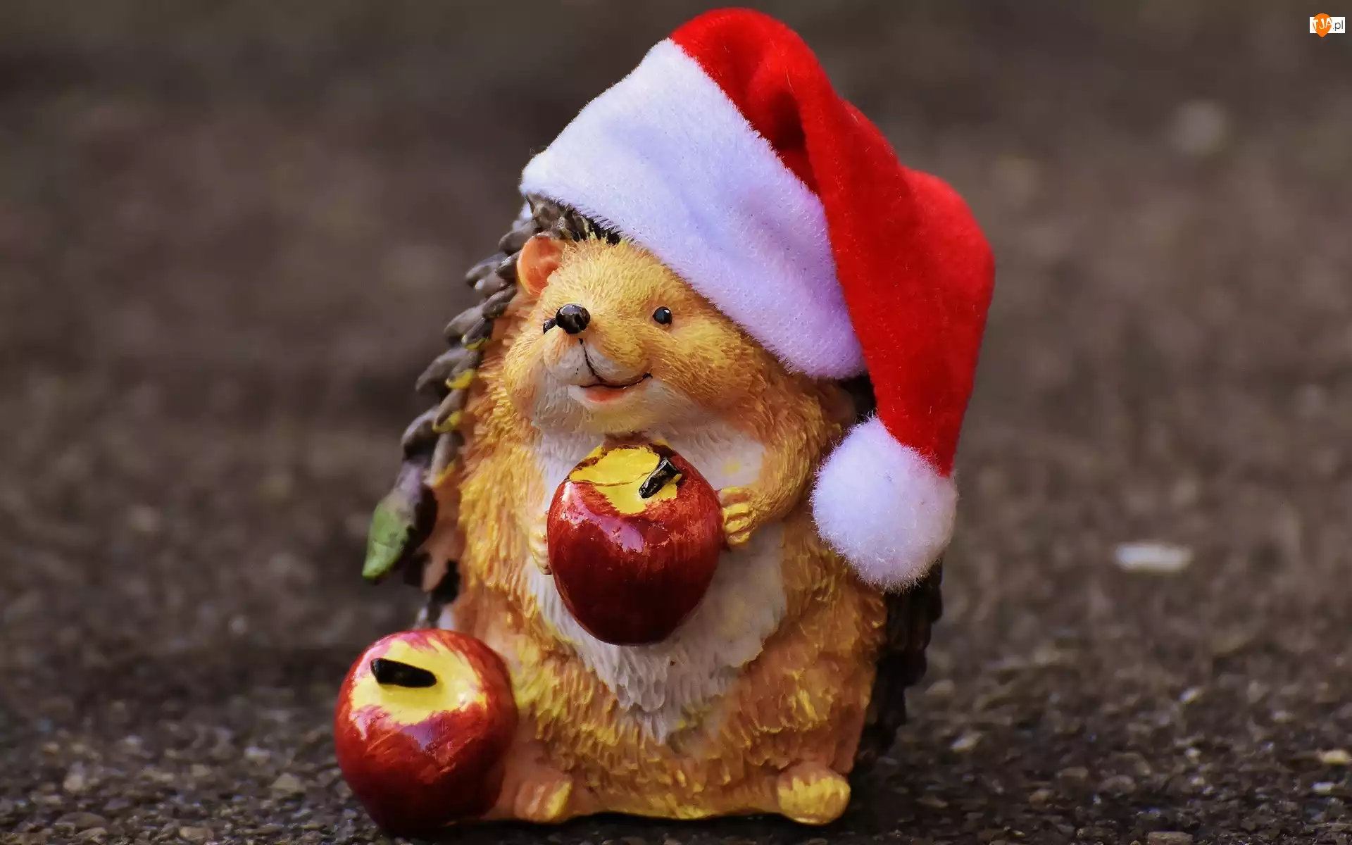 Mikołaj, Figurka, Jabłka, Jeż, Czapka