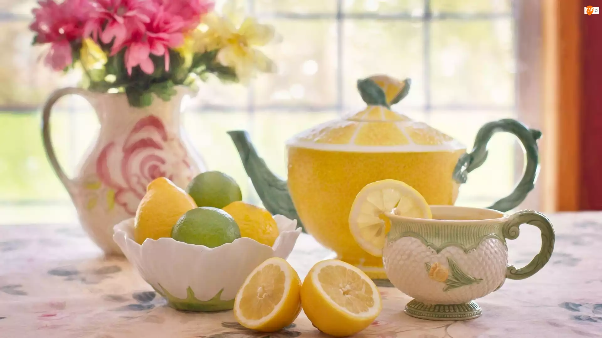 Filiżanka, Limonki, Kompozycja, Cytryny, Imbryk,