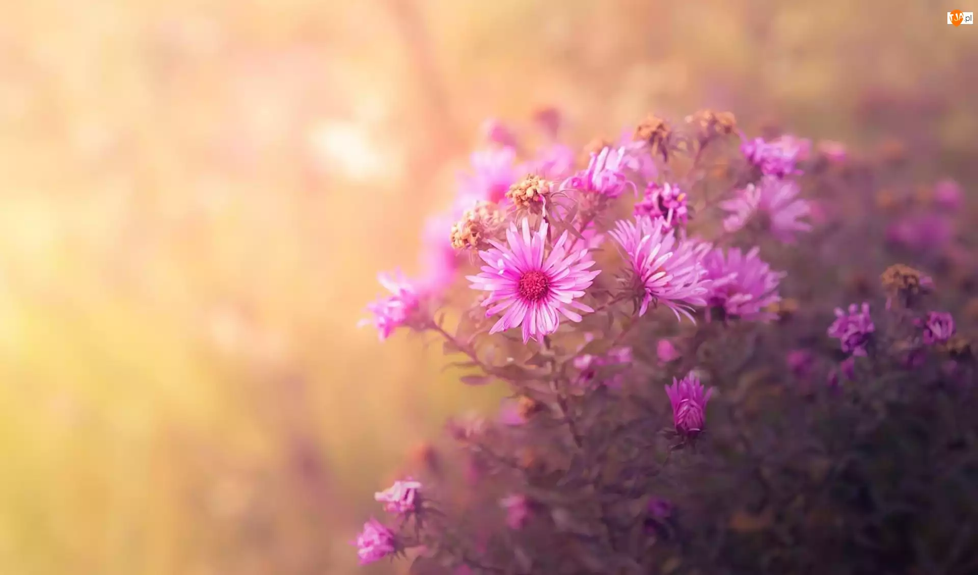 Rozmyte tło, Kwiaty, Różowe, Astry