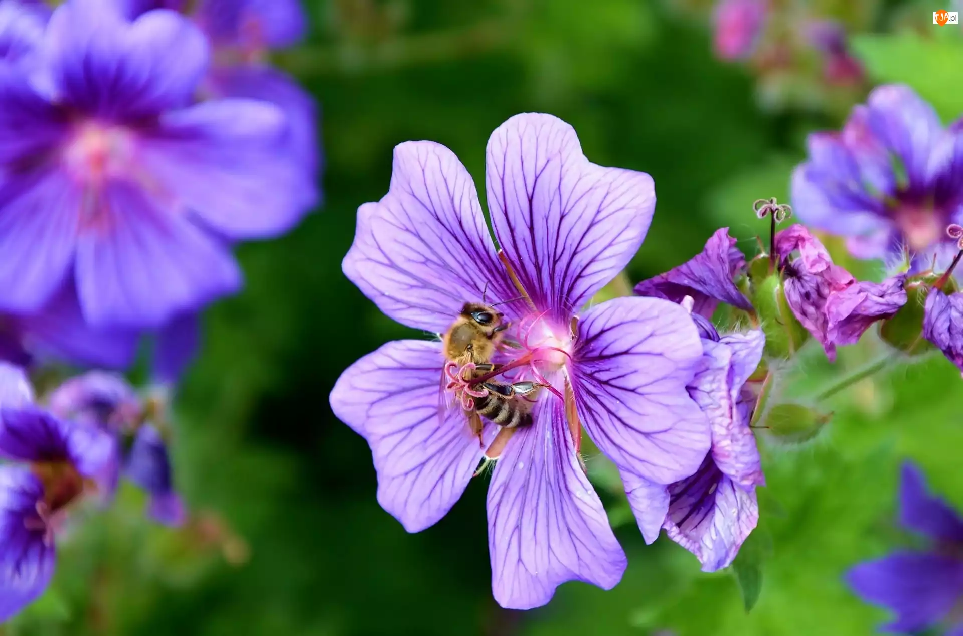 Fioletowe, Bodziszek, Kwiatki, Pszczoła