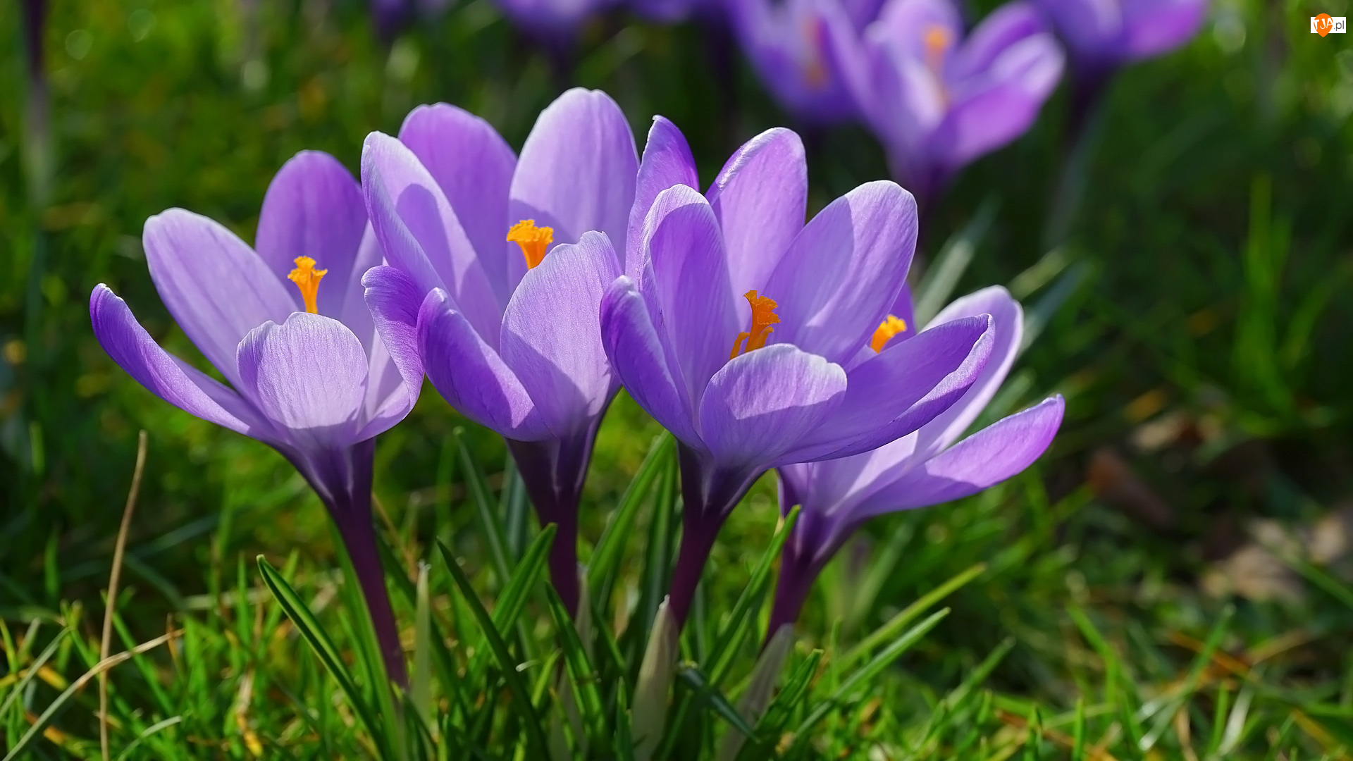 Fioletowe, Trawa, Kępka, Kwiaty, Krokusy