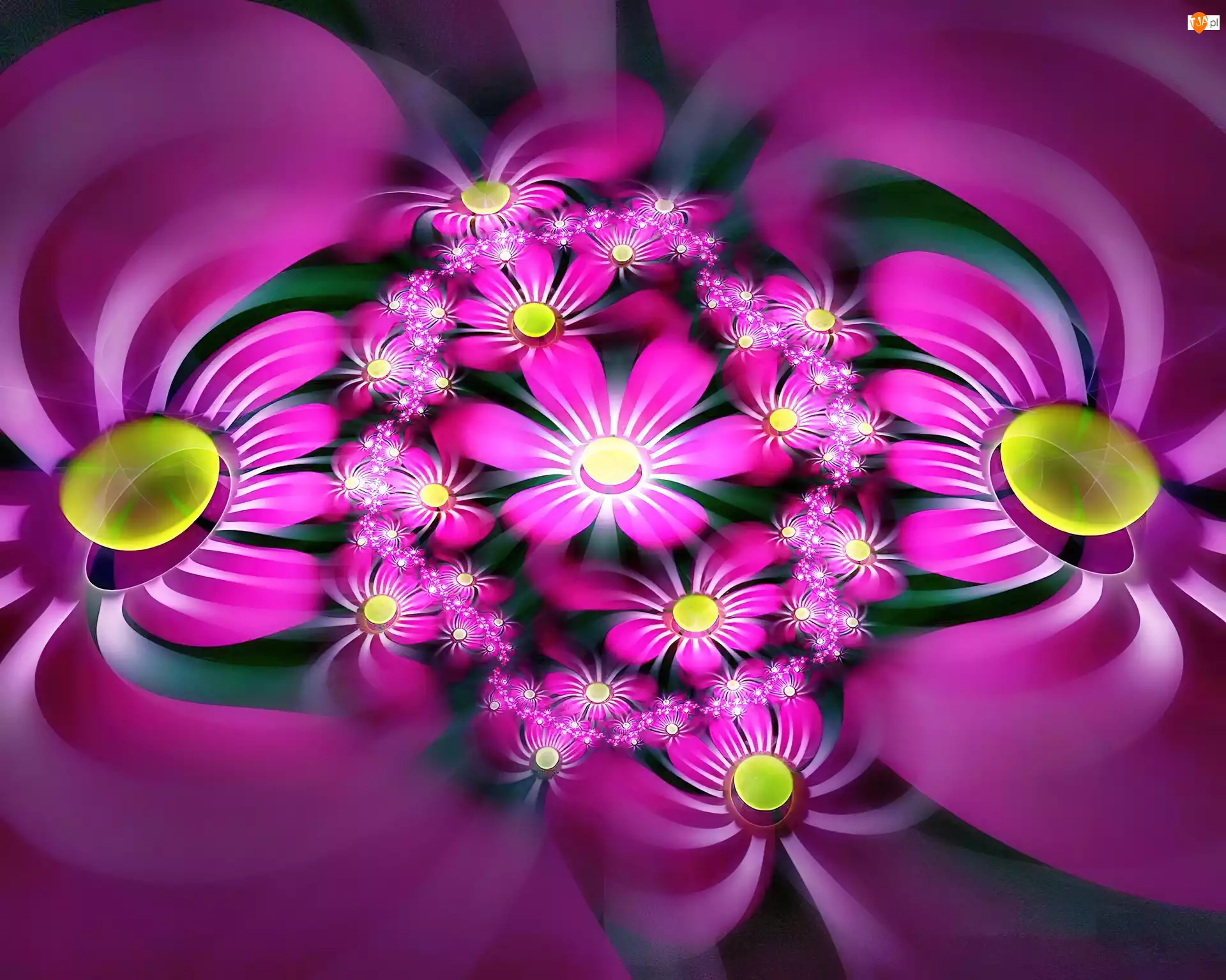 Fioletowo, Fraktal, Żółte, Kwiaty