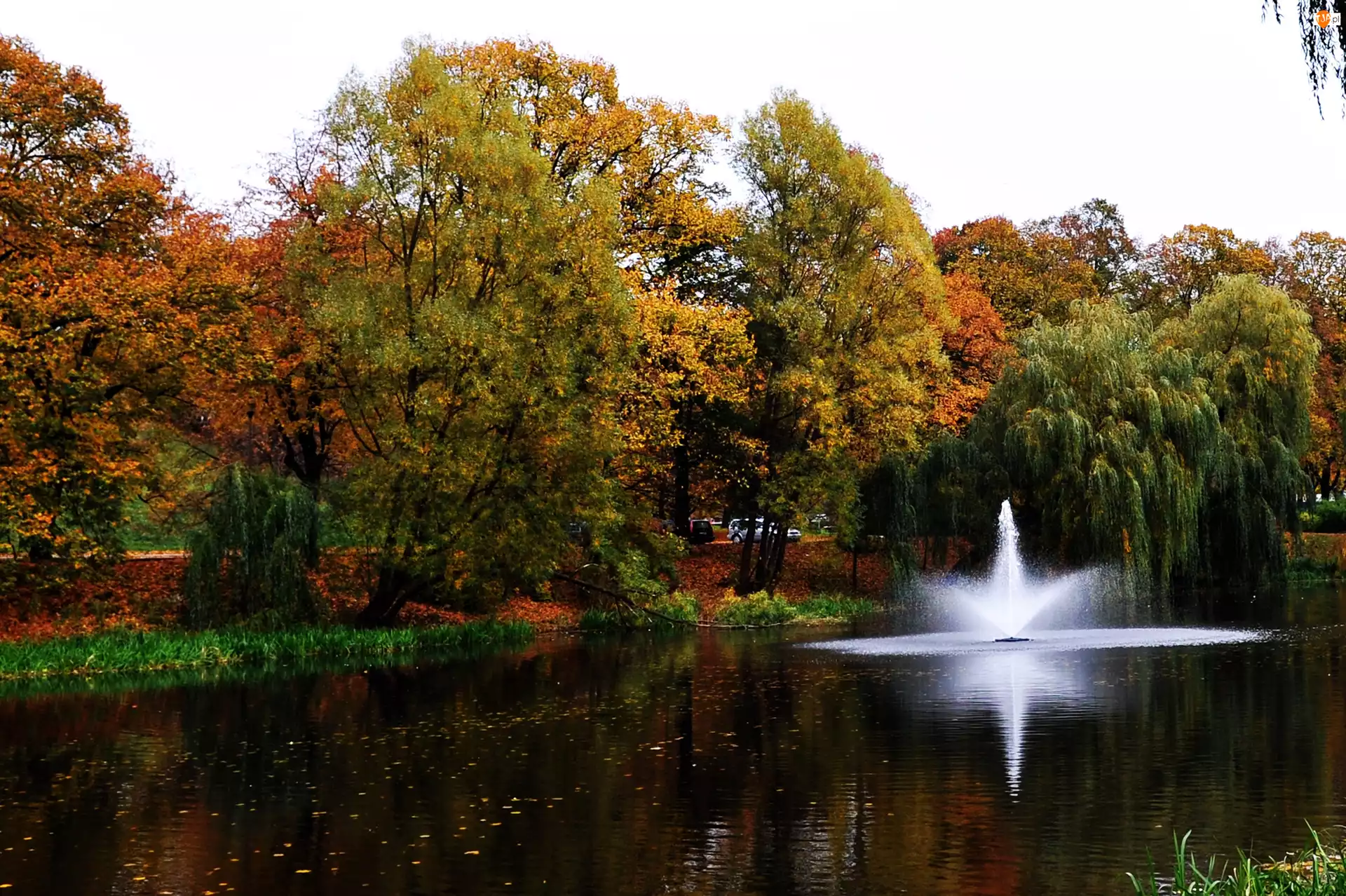 Kolorowe, Fontanna, Jesienią, Park, Drzewa