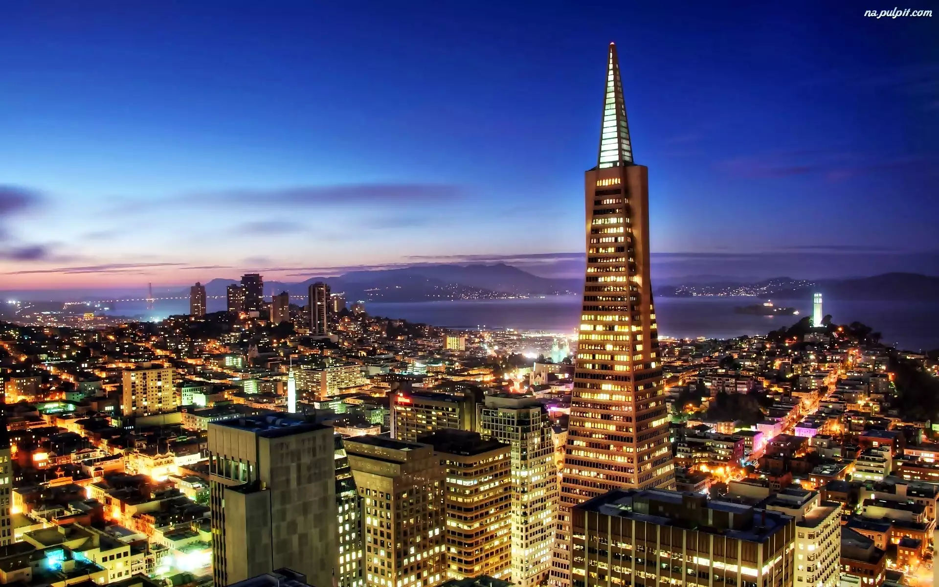 San, Panorama, Nocą, Pyramid, Francisco, Transamerica