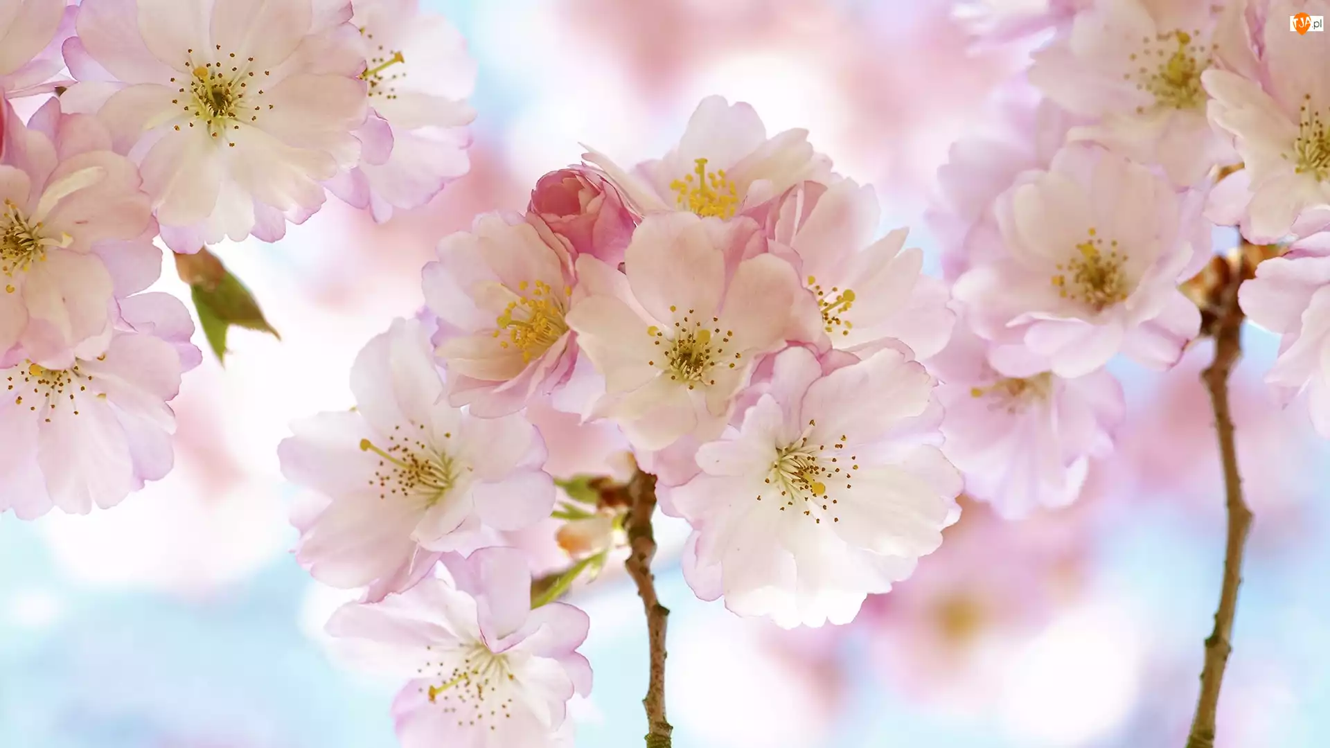 Drzewo owocowe, Gałązki, Tło, Wiśnia, Rozmyte, Kwiaty, Różowe