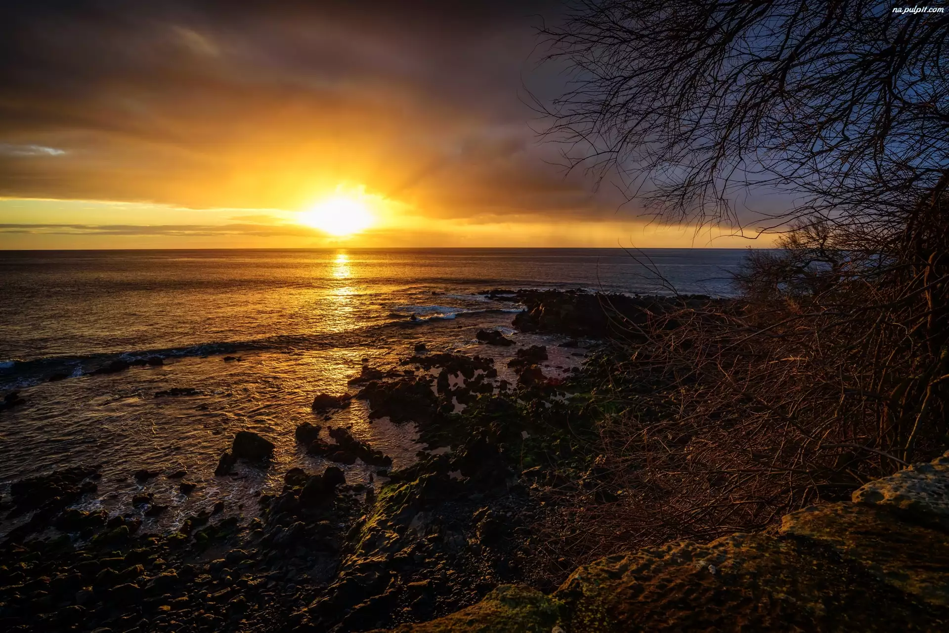 Gałęzie, Zachód słońca, Wybrzeże