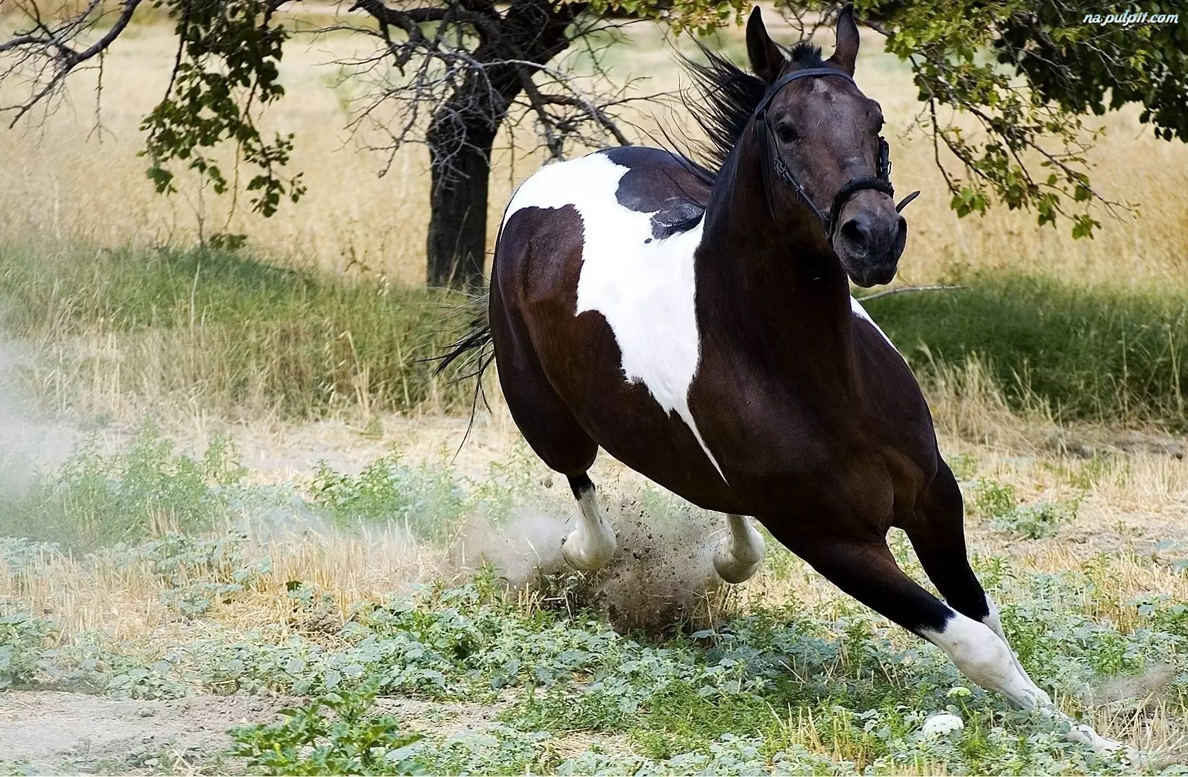 Galopujący, Drzewo, Koń, Trawa