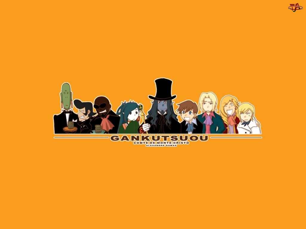 Gankutsuou, kapelusz, ludzie, napis