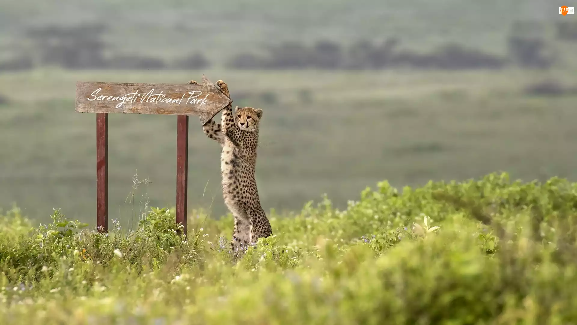 Tanzania, Tabliczka, Gepard, Afryka, Park Narodowy Serengeti, Napis, Drogowskaz