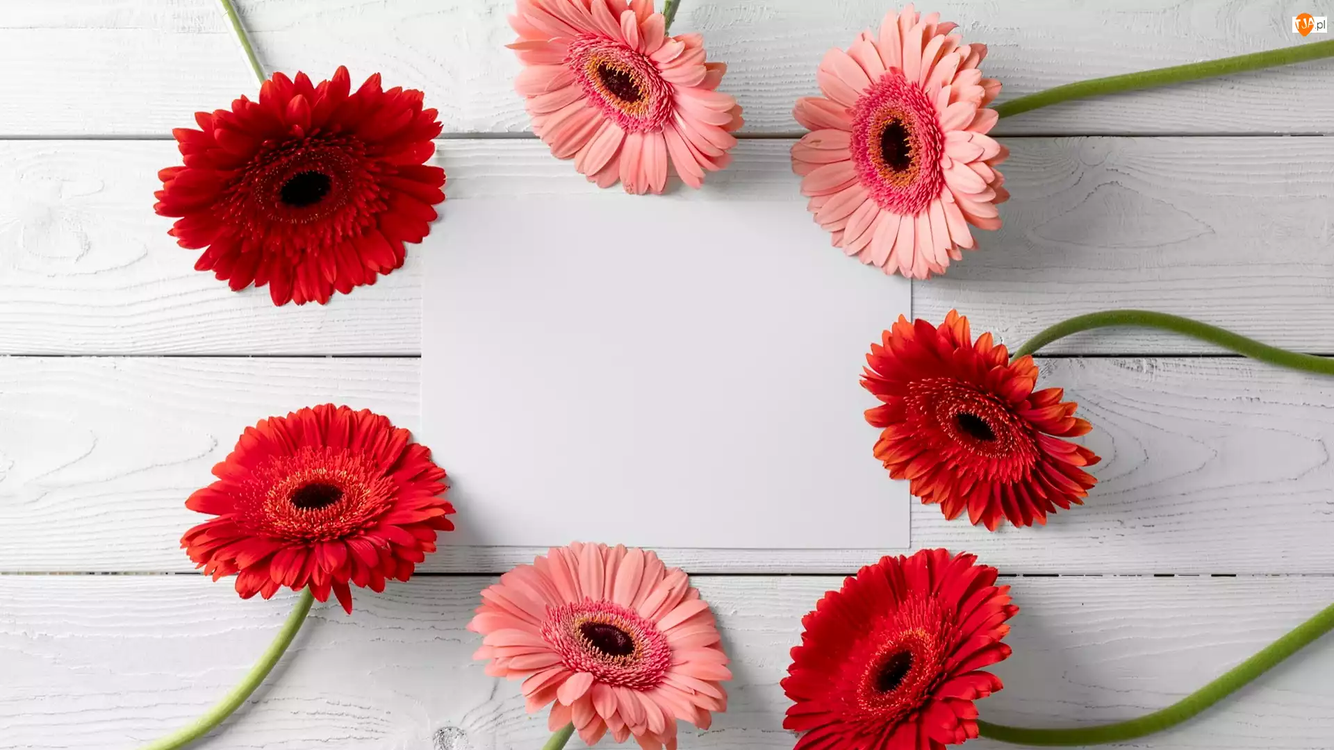 Gerbery dookoła pustej kartki