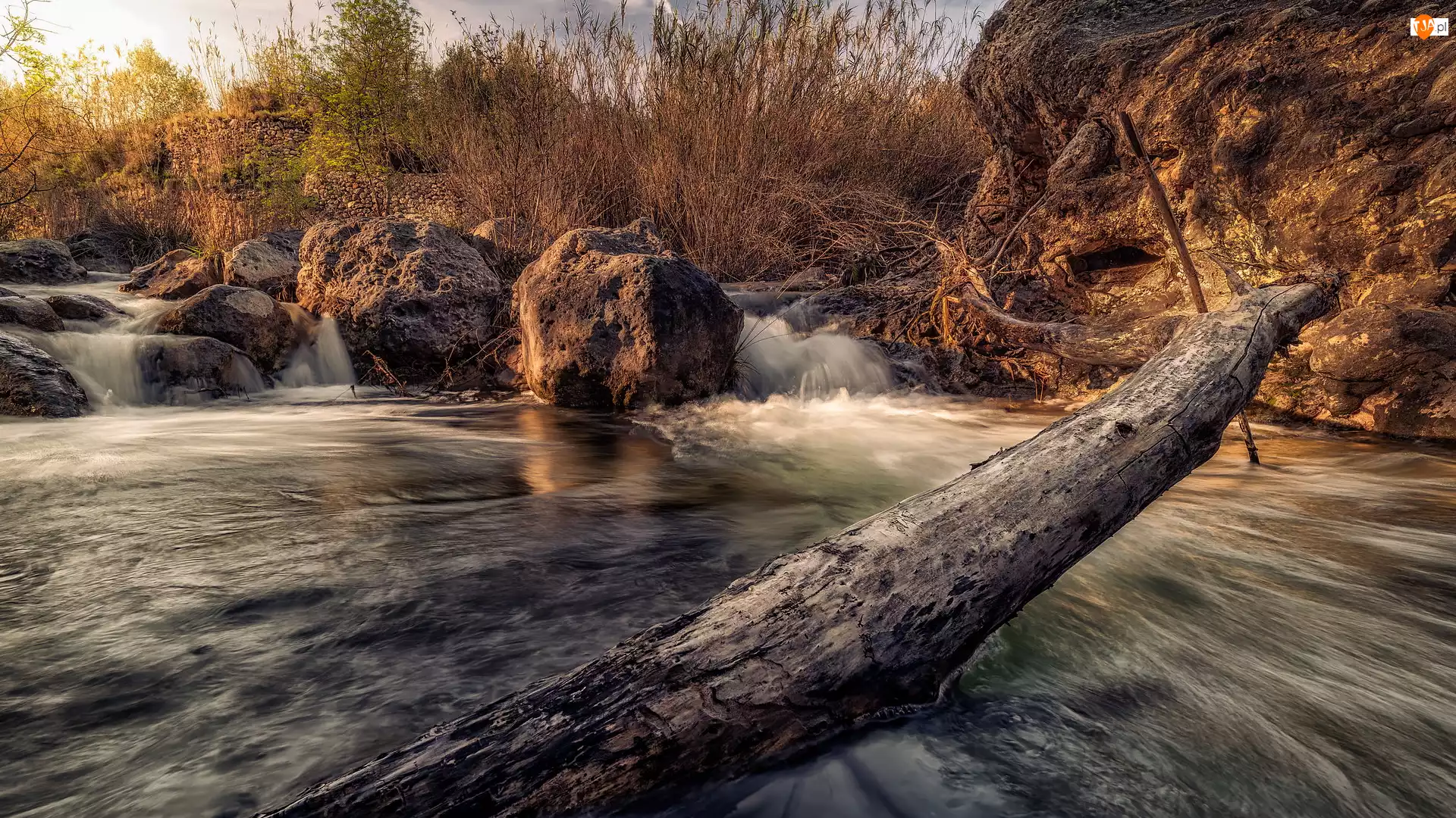 Głazy i konar w rzece