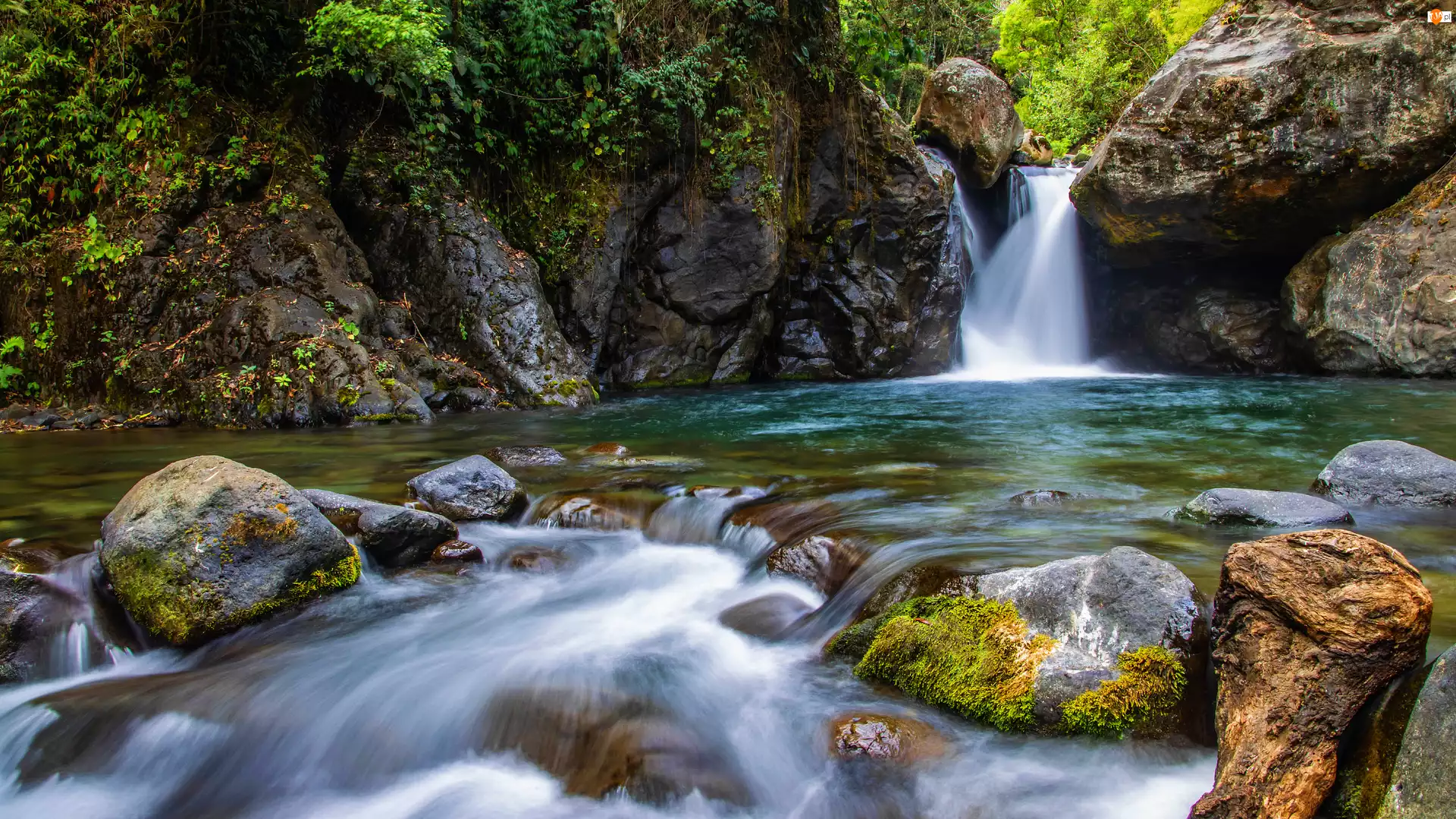 Głazy, Rzeka, Skały, Wodospad, Kamienie