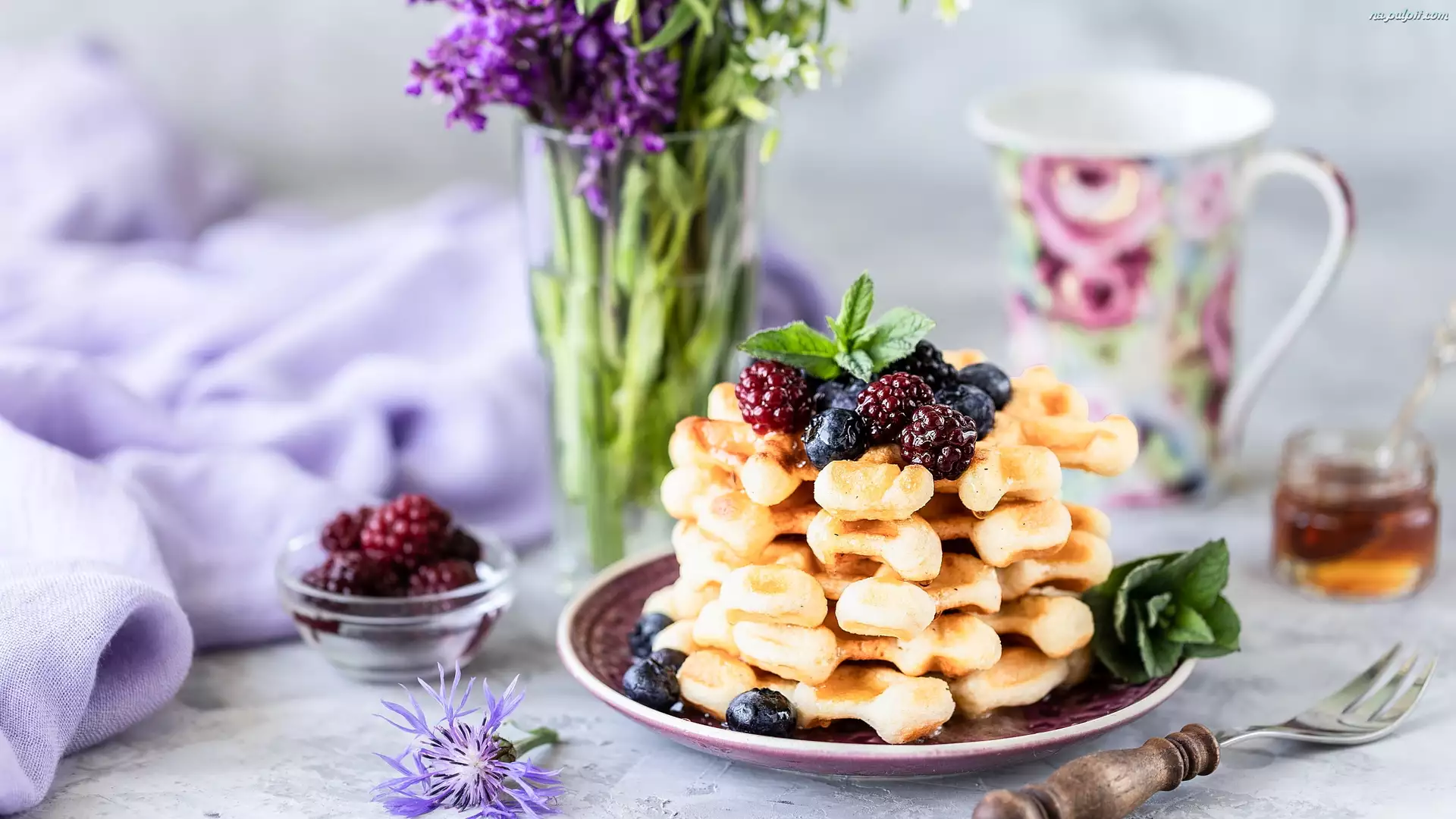 Owoce, Gofry, Jeżyny, Widelec, Jagody, Talerzyk