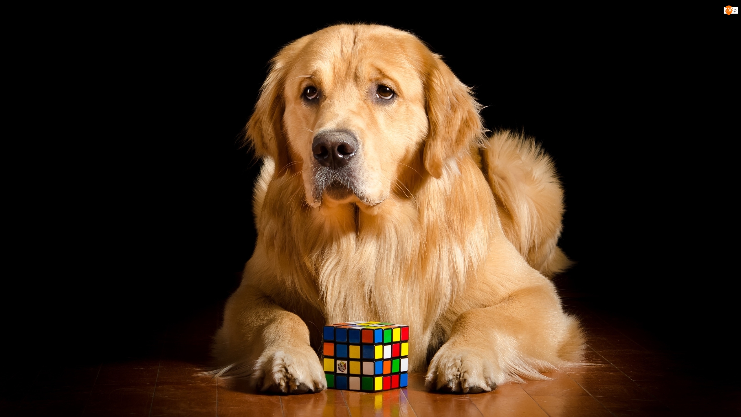 Tło, Golden retriever, Kostka Rubika, Ciemne
