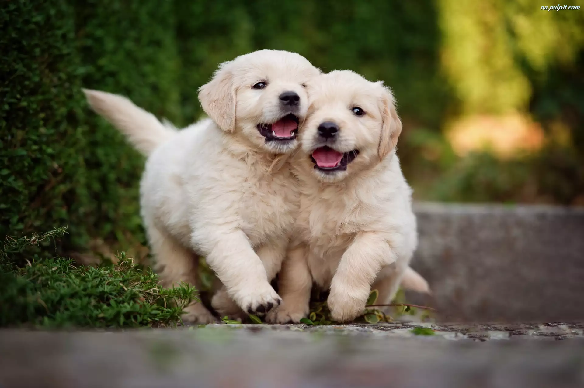 Golden Retrievery, Szczeniaki, Dwa, Psy