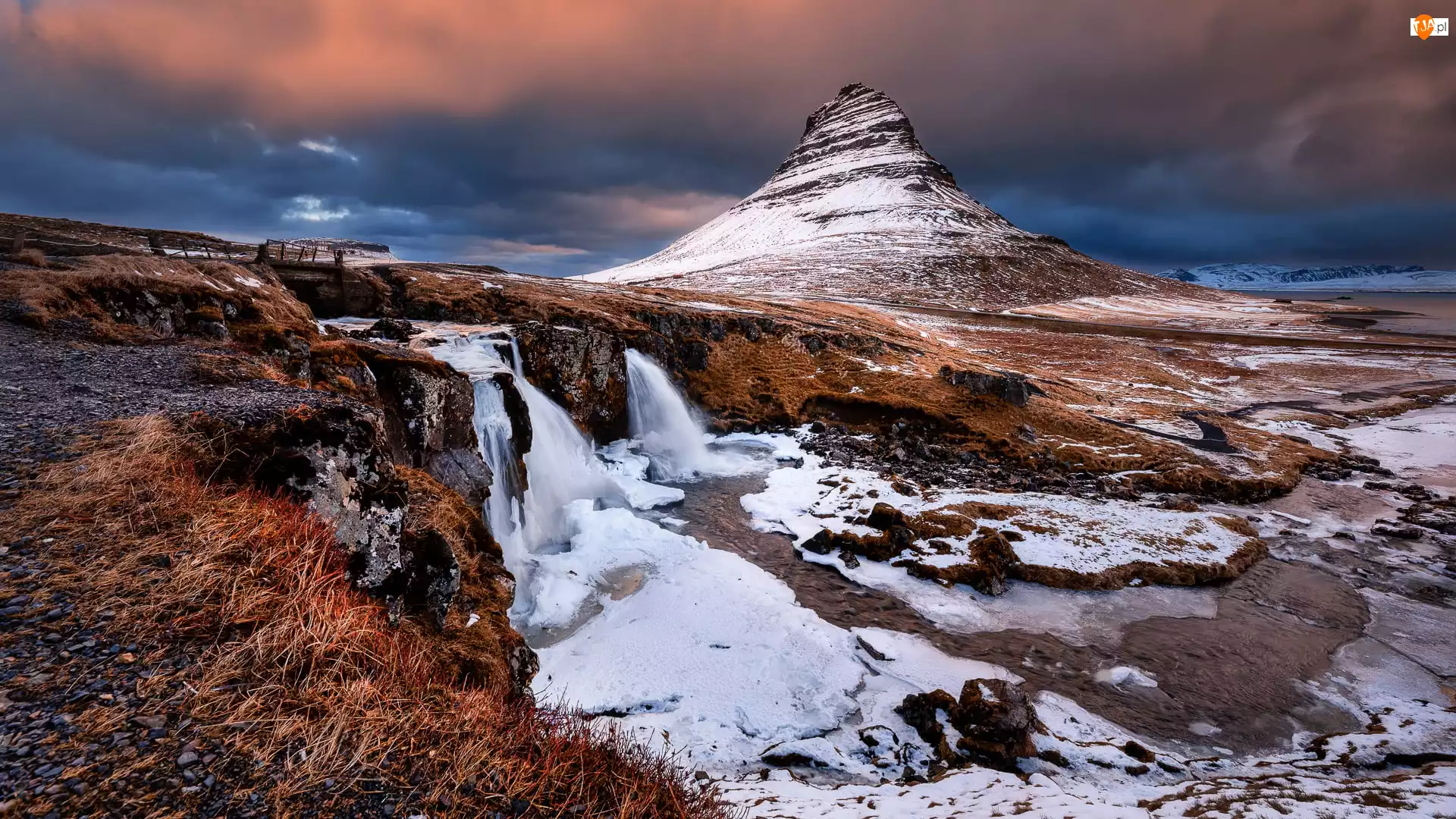 Góra Kirkjufell, Zima, Wodospad Kirkjufellsfoss,