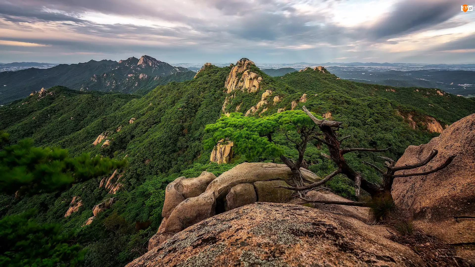 Góra, Mount Dobongsan, Park Narodowy Bukhansan, Korea Południowa, Sosna, Lasy, Skały