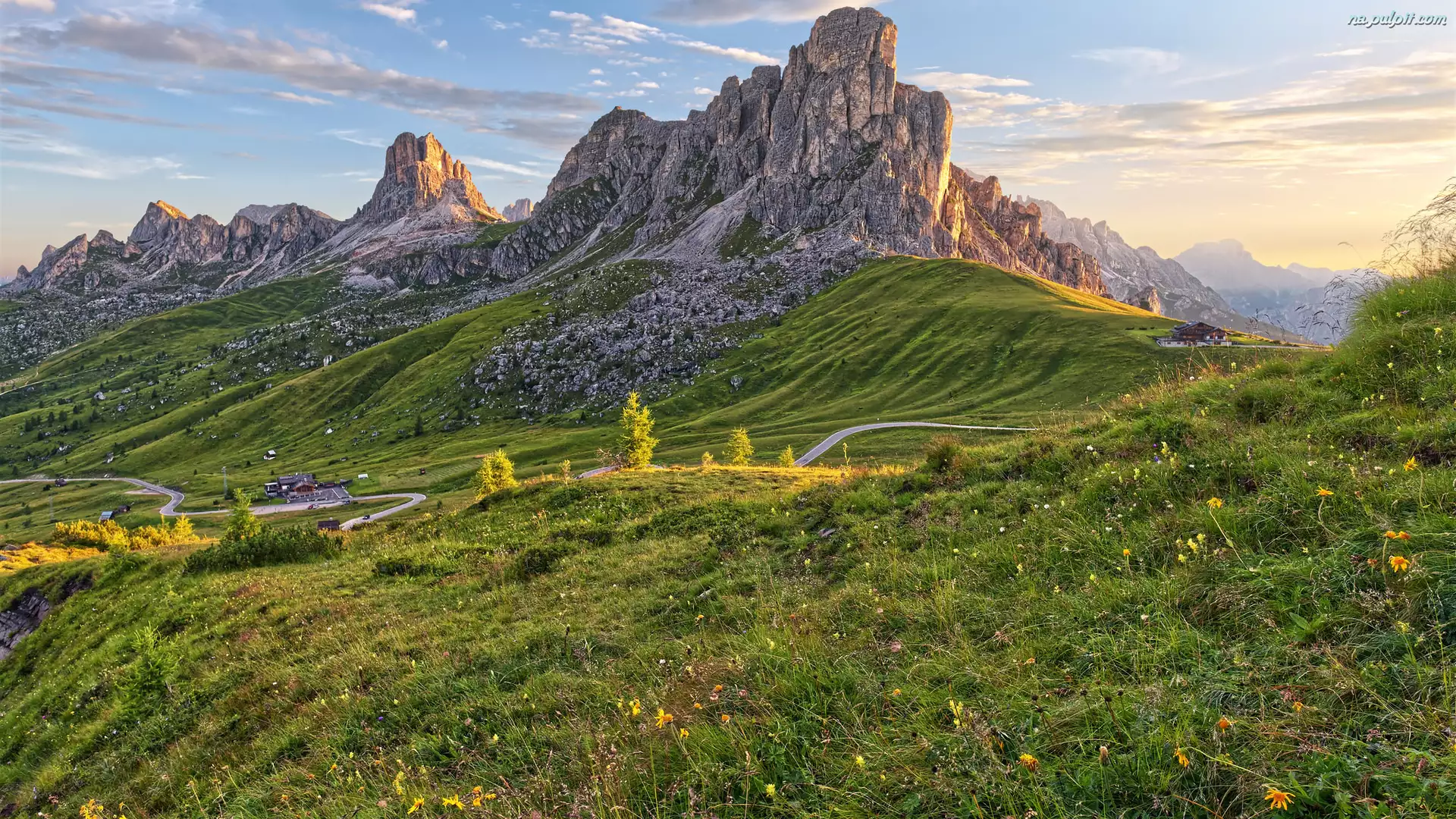 Góra Ra Gusela, Dolomity, Włochy, Góry, Belluno, Łąka, Droga